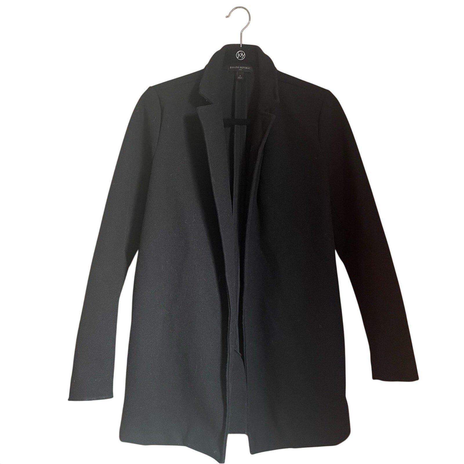 Banana Republic Chic Minimalist Black Pea Coat size Small Capsule Wardrobe