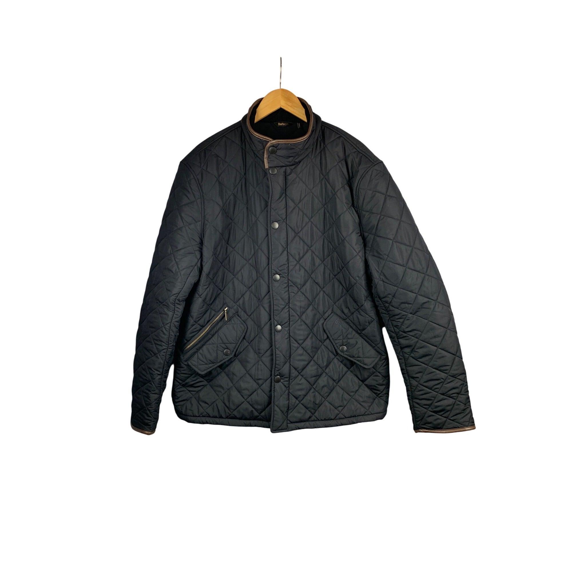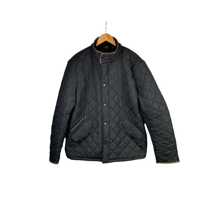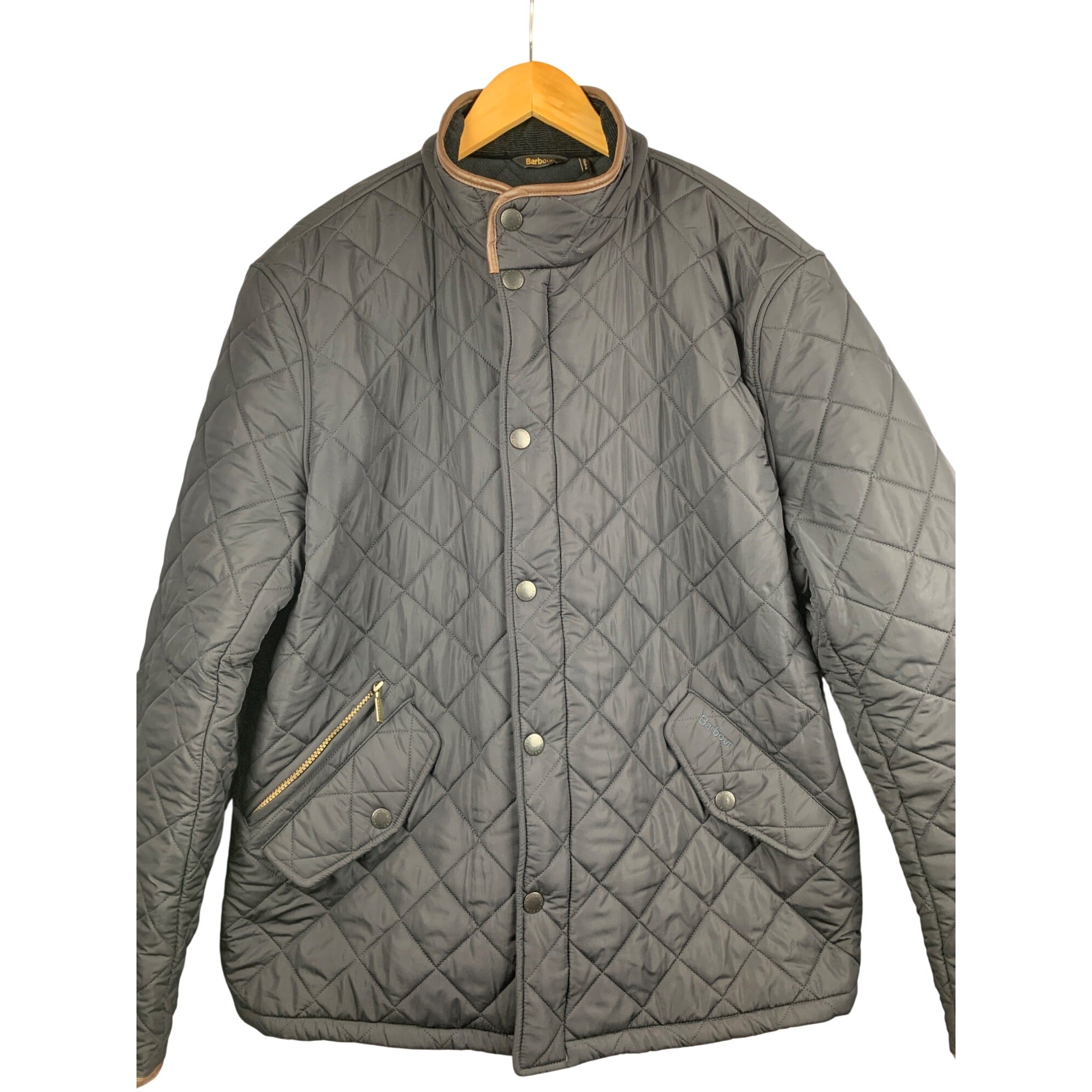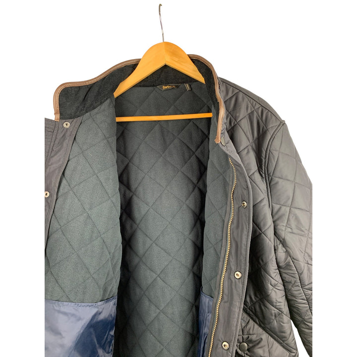 Barbour Mens Quilted Jacket XXL Gray Diamond Pattern Snap & Zip Closure