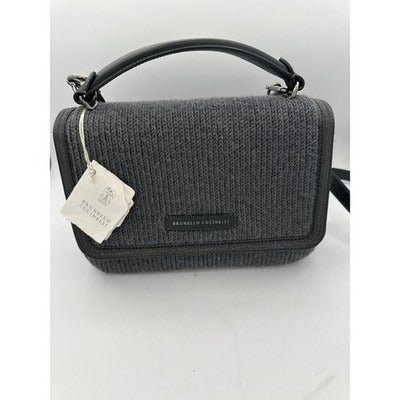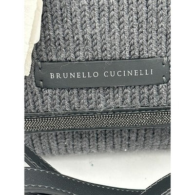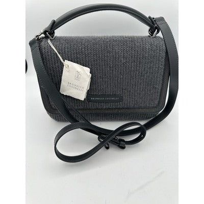 Brunello Cucinelli Gray Leather & Wool Shoulder Bag