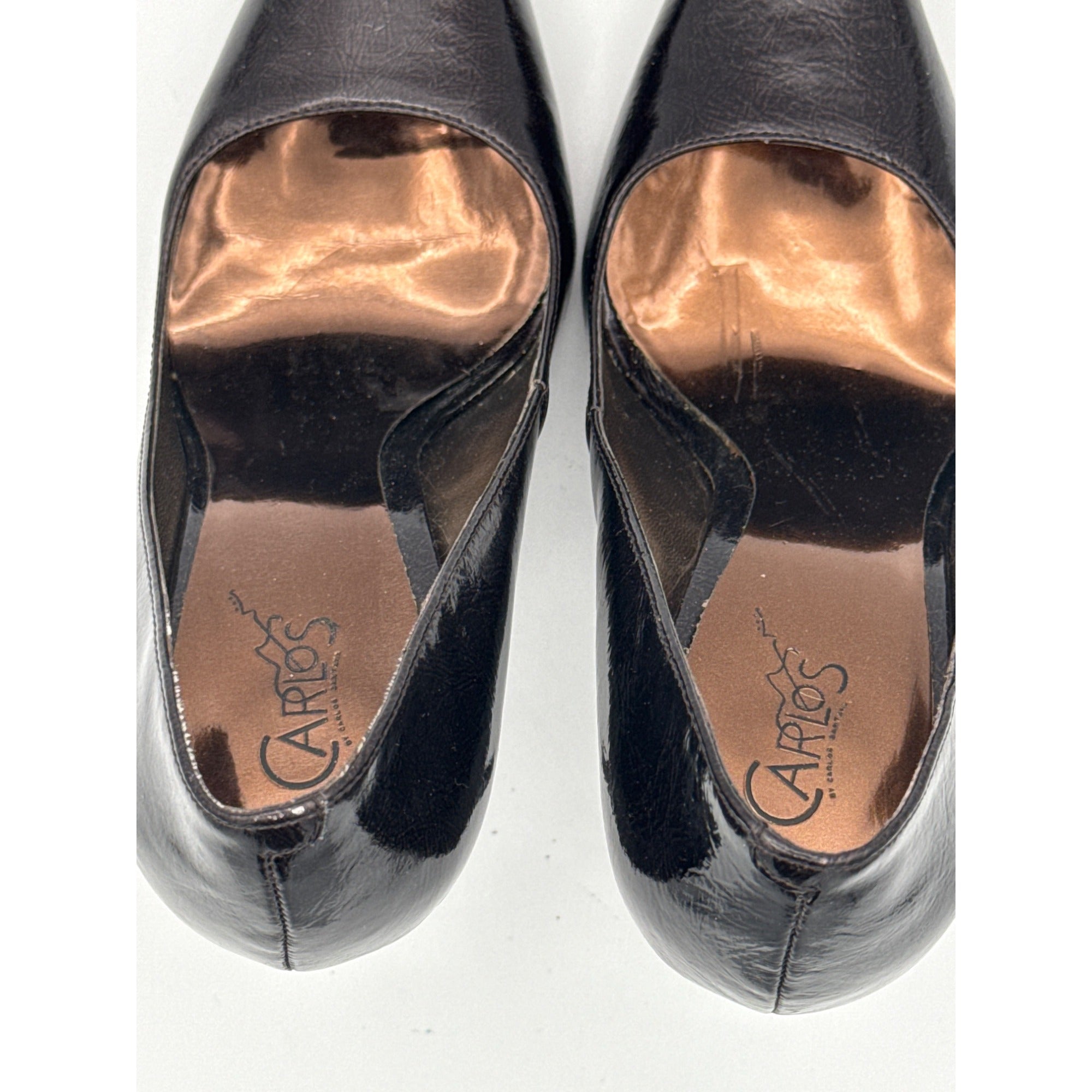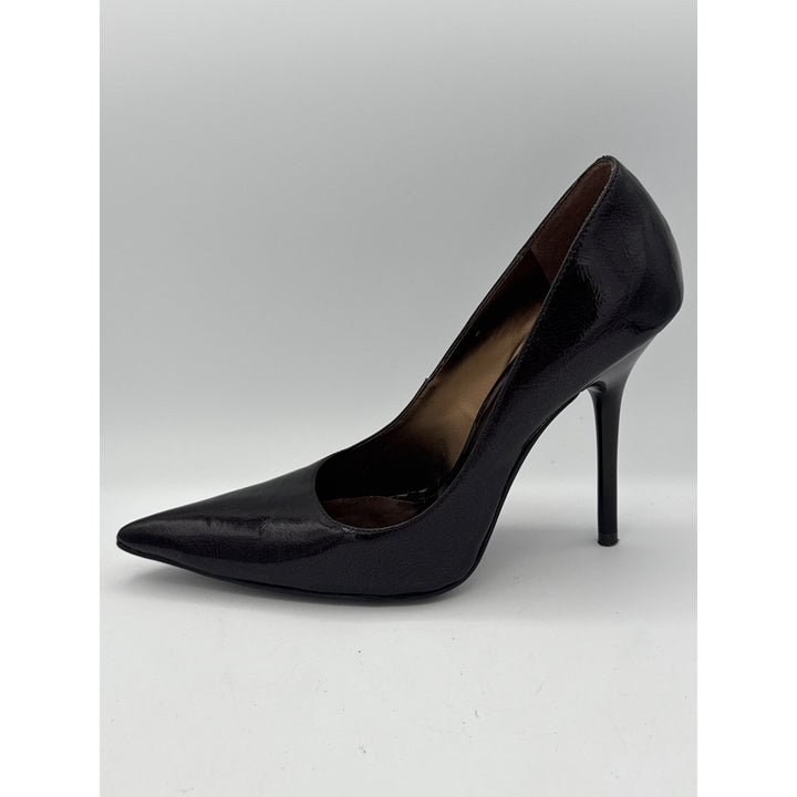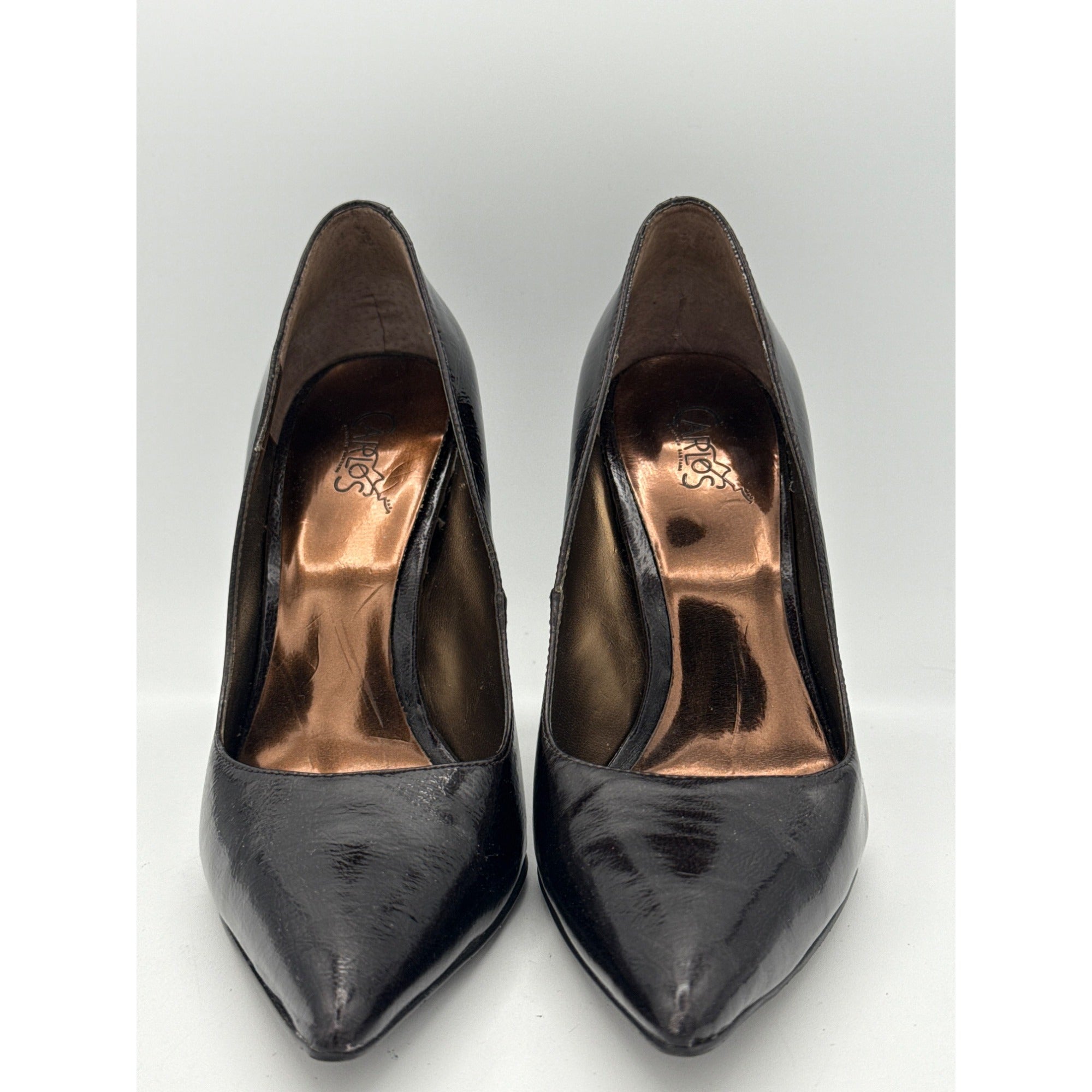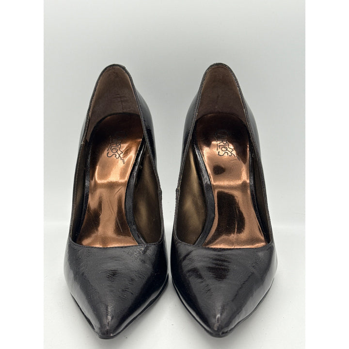 Step out in style with these stunning black patent leather stiletto heels by Carlos Santana. Perfect for any occasion, these size 7 shoes add elegance and sophistication to your wardrobe. Elevate your fashion game effortlessly with these must-have heels.