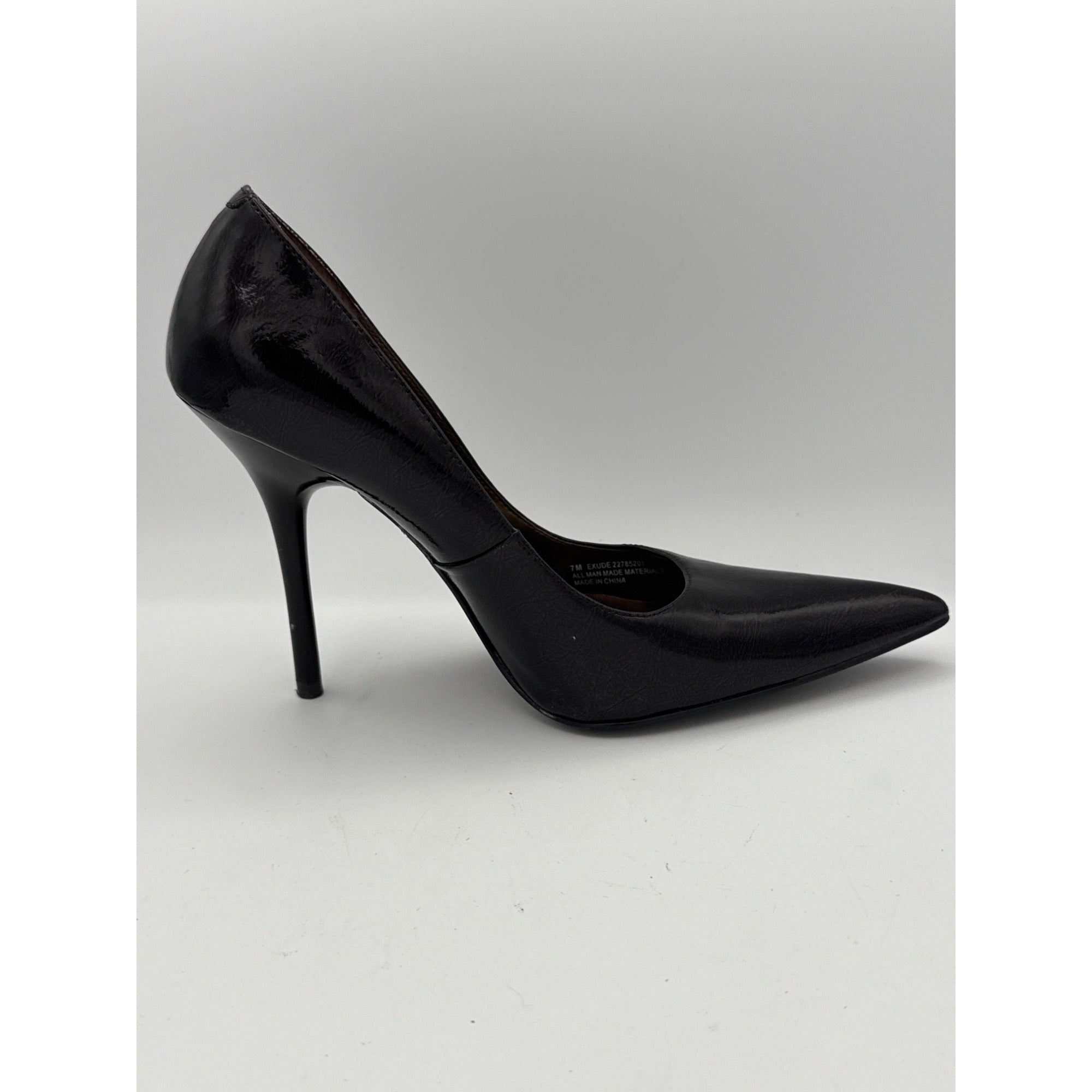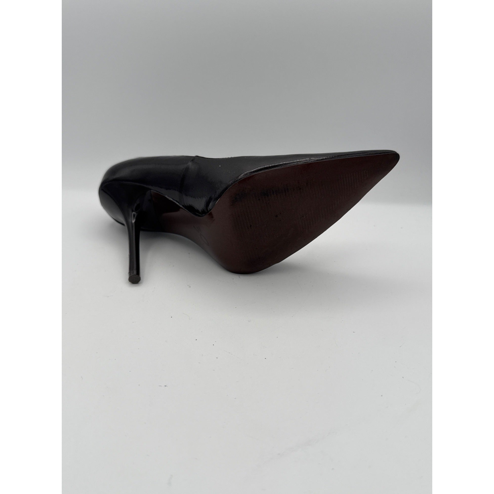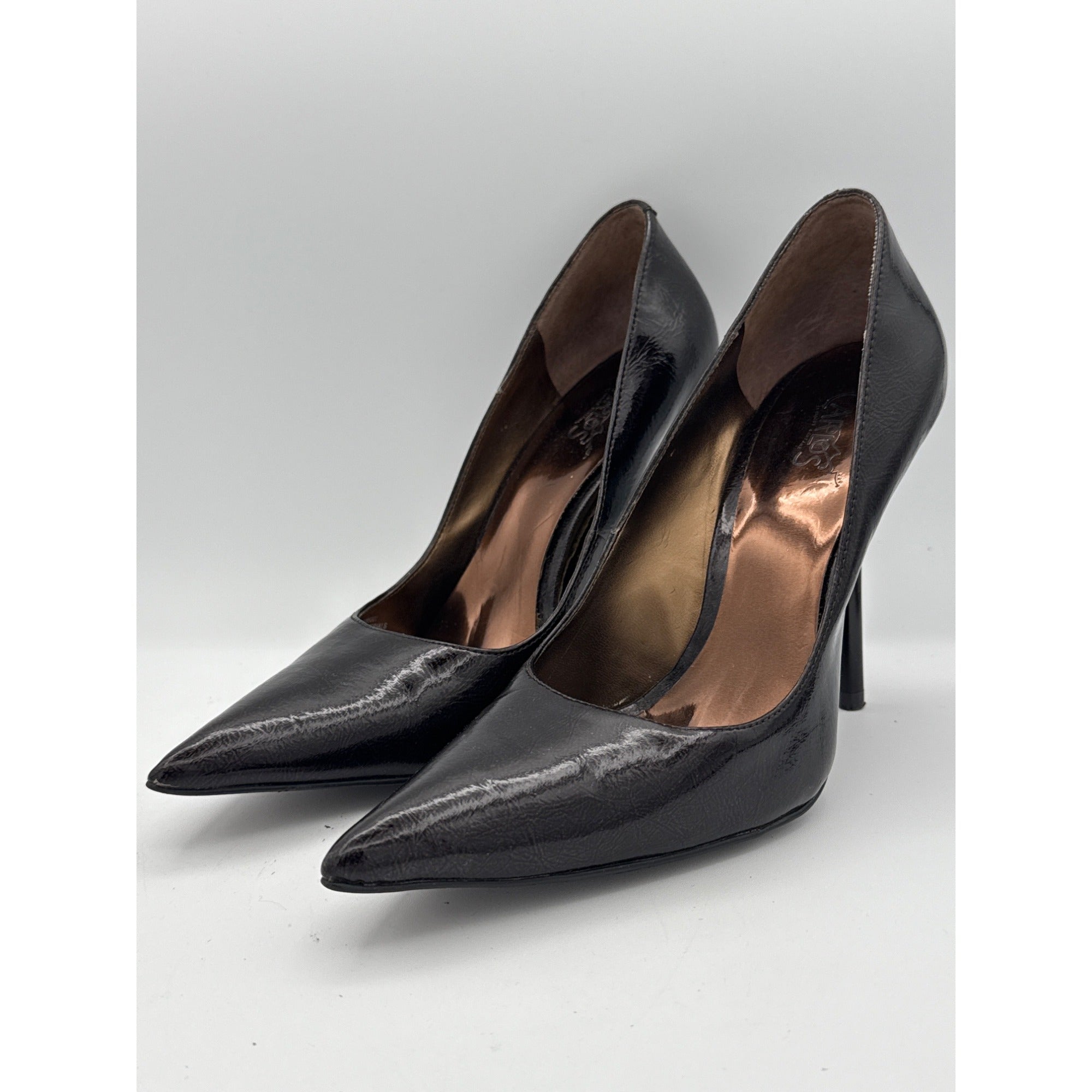 Step out in style with these stunning black patent leather stiletto heels by Carlos Santana. Perfect for any occasion, these size 7 shoes add elegance and sophistication to your wardrobe. Elevate your fashion game effortlessly with these must-have heels.