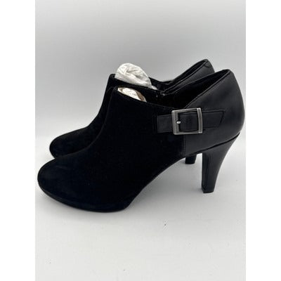 Clarks Women’s Black Ankle Heels Size 10W – Soft Cushion Wide Width Shoes