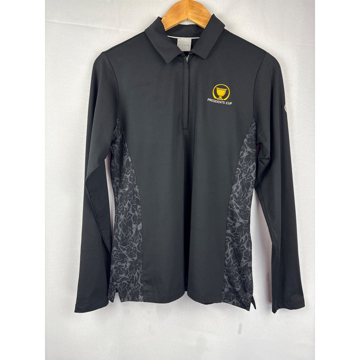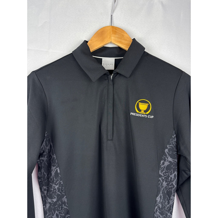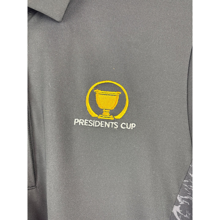 Elevate your golf attire with this stylish Dunning Presidents Cup long sleeve polo shirt in black. Perfect for medium-sized men, this shirt combines comfort with a classic design, ideal for any golf enthusiast.
