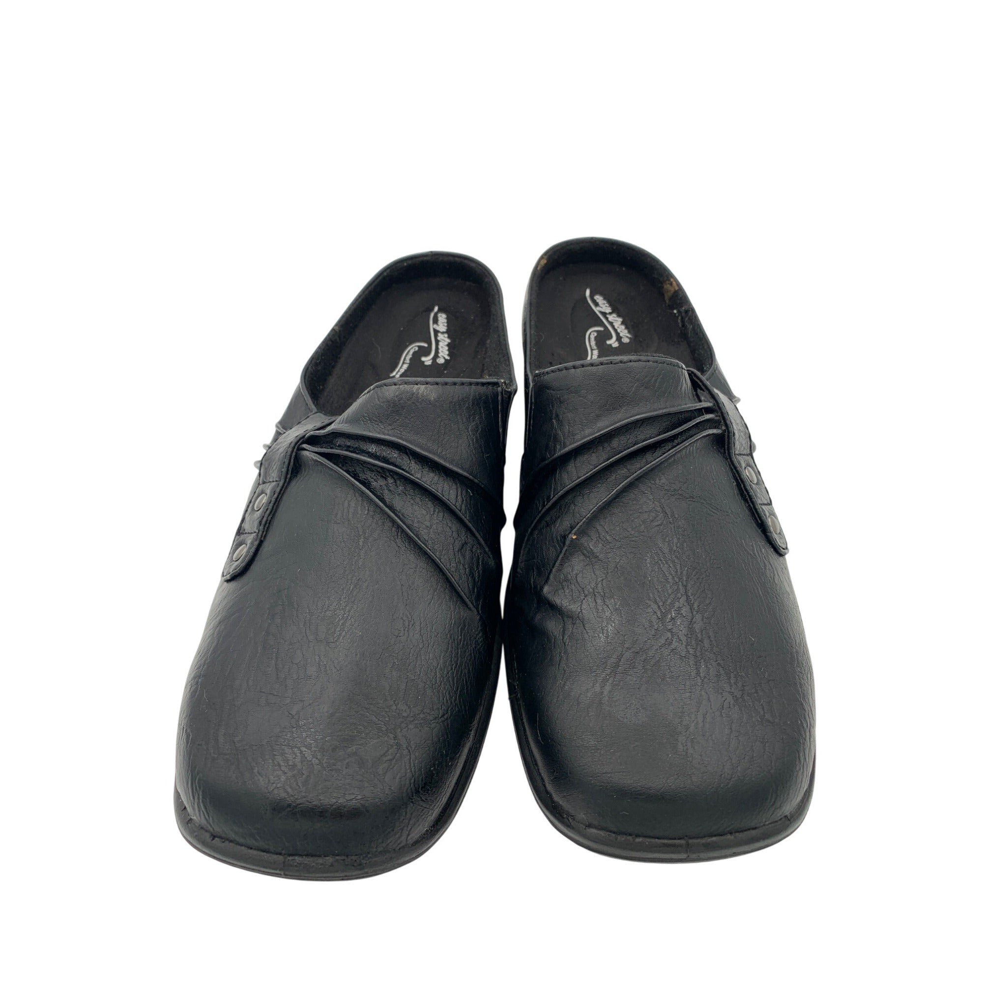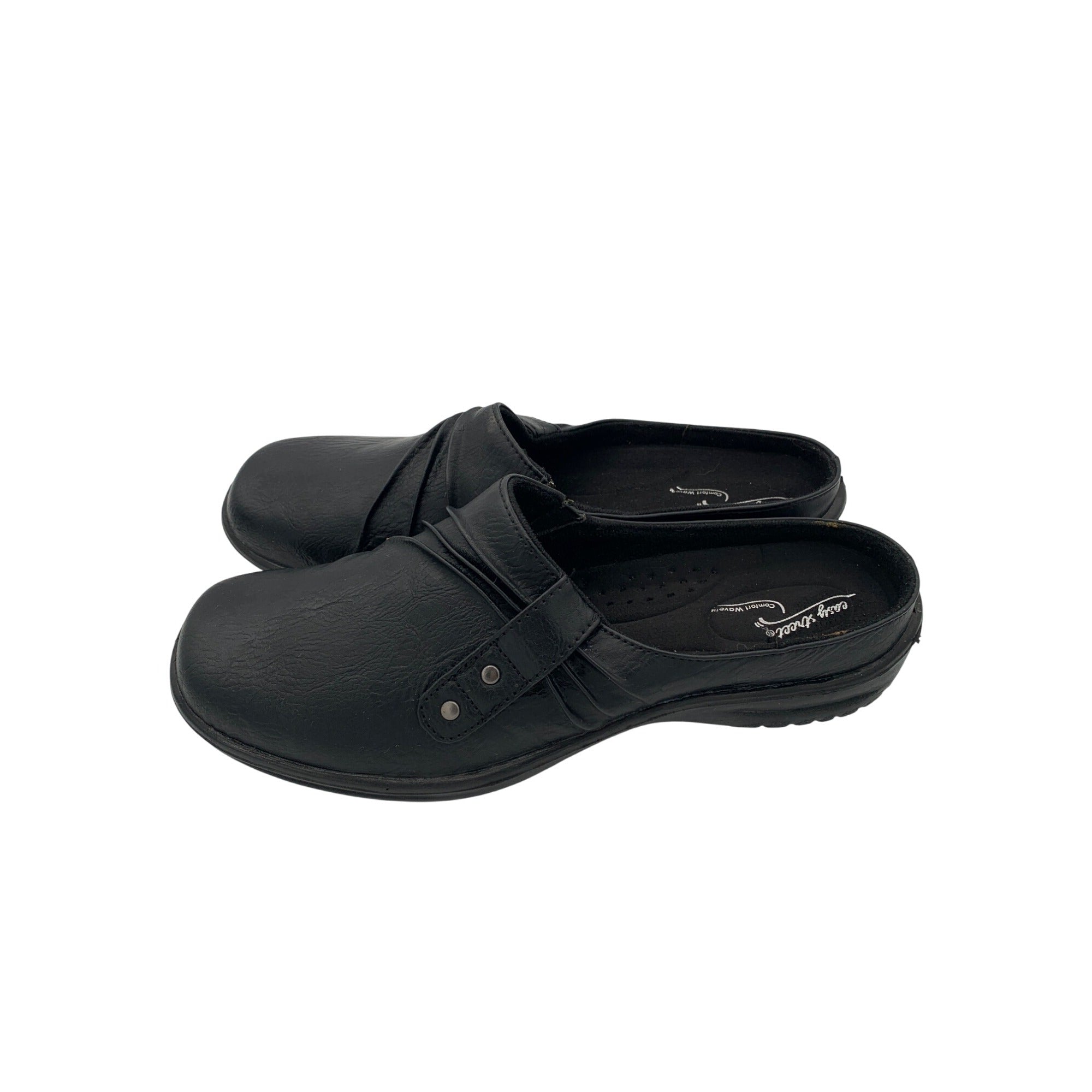 Easy Spirit Womens Black Leather Slip-On Mules Size 8