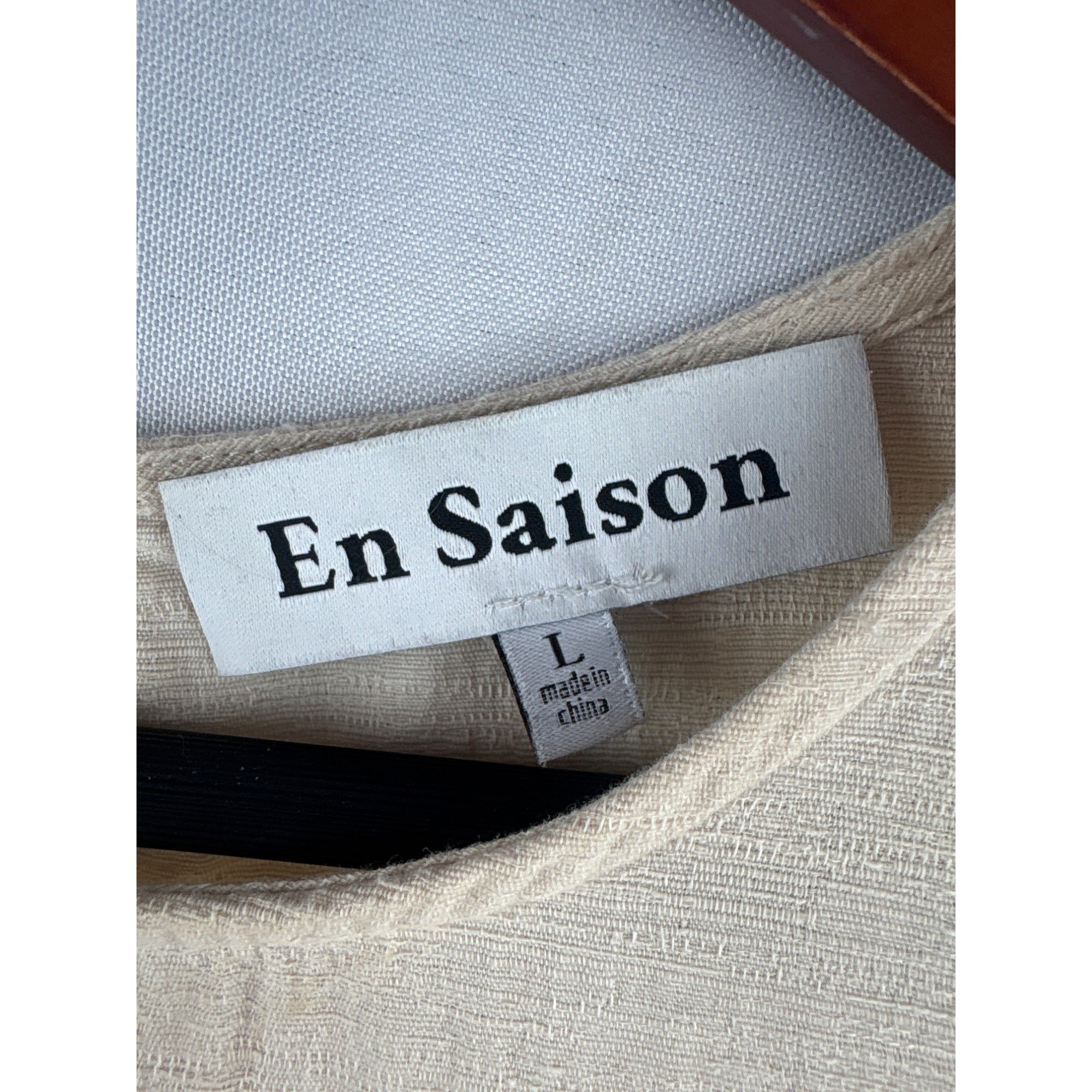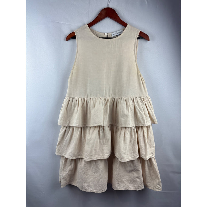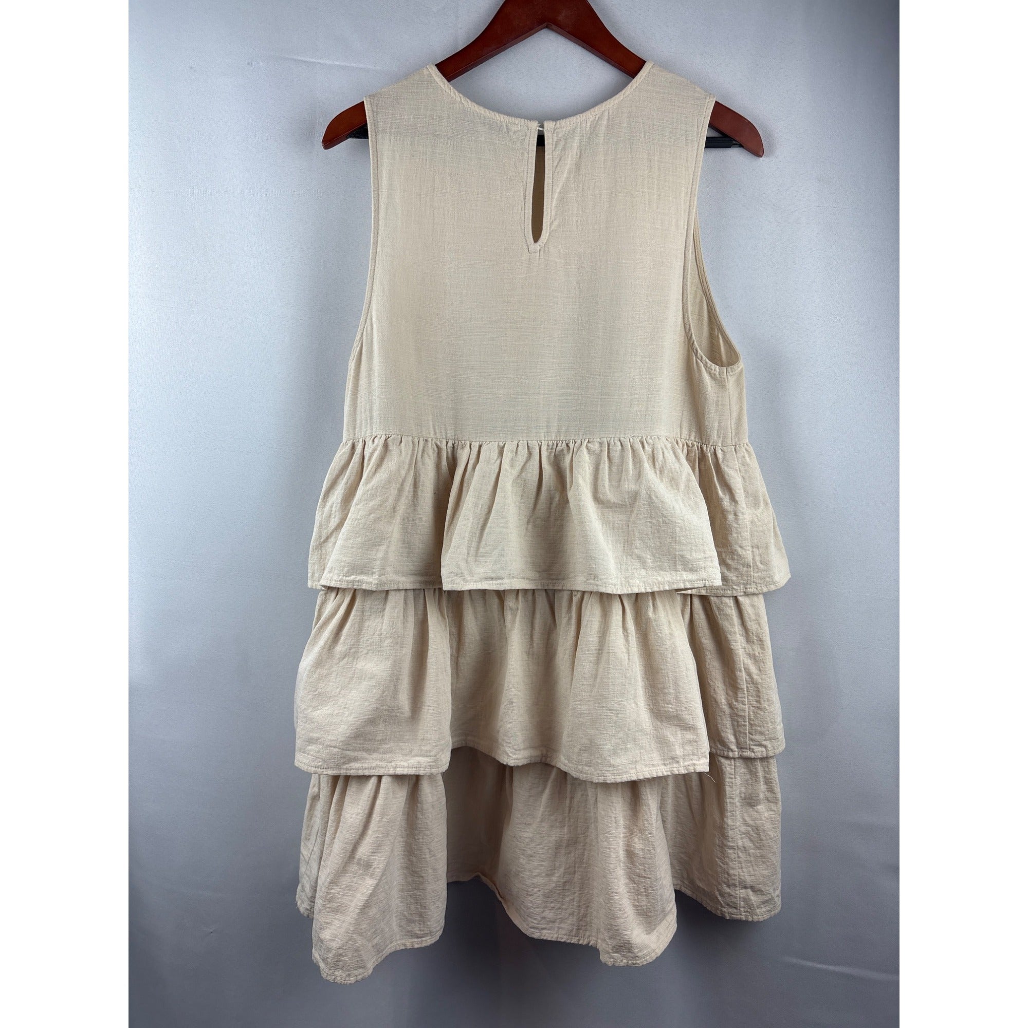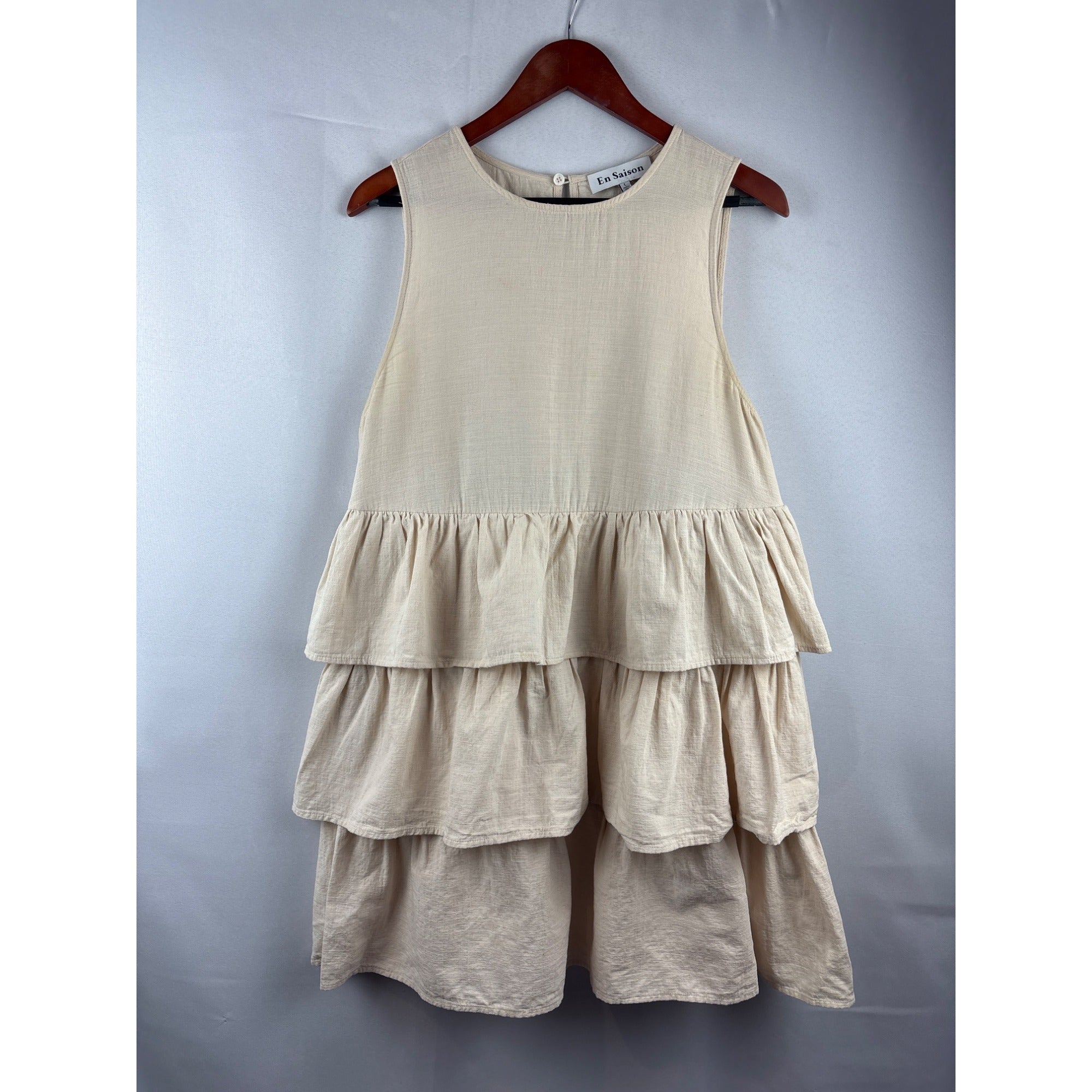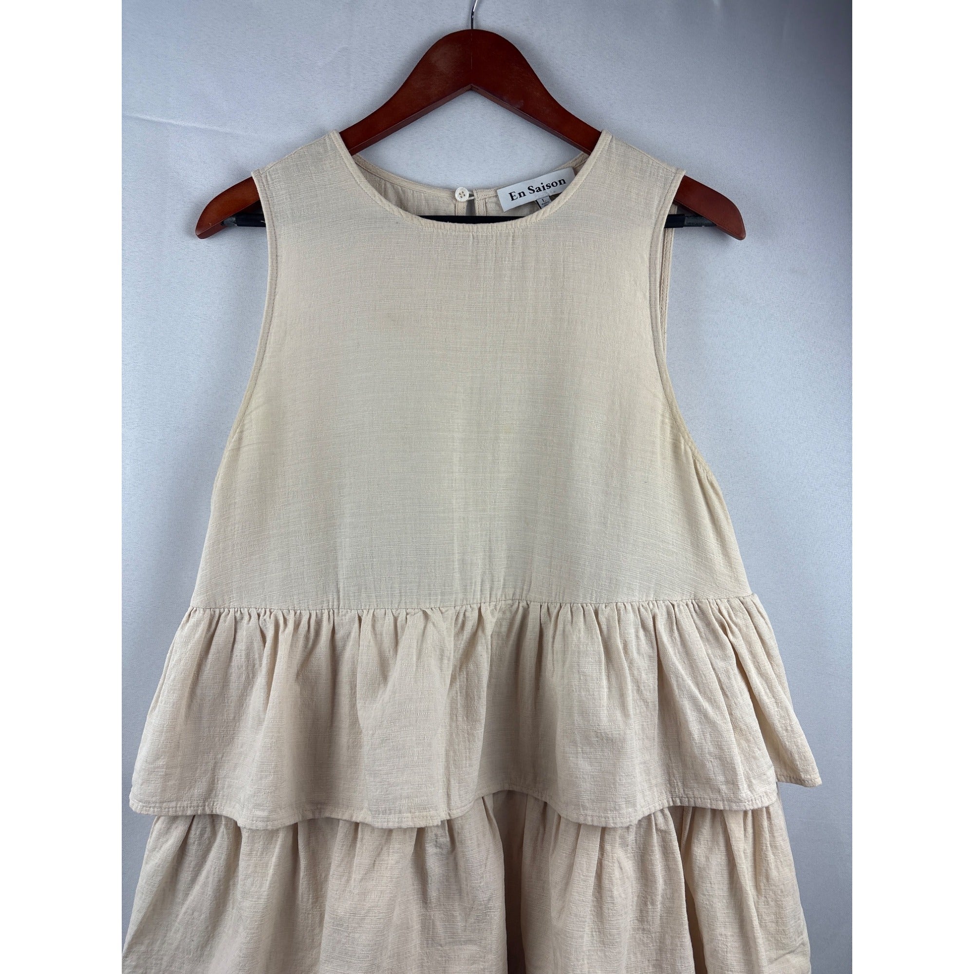 En Saison Sleeveless Tiered Ruffle Dress Size L - Beige Cotton