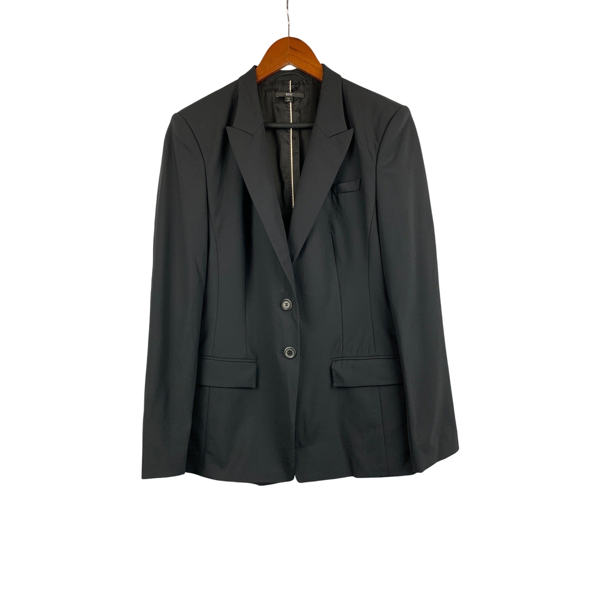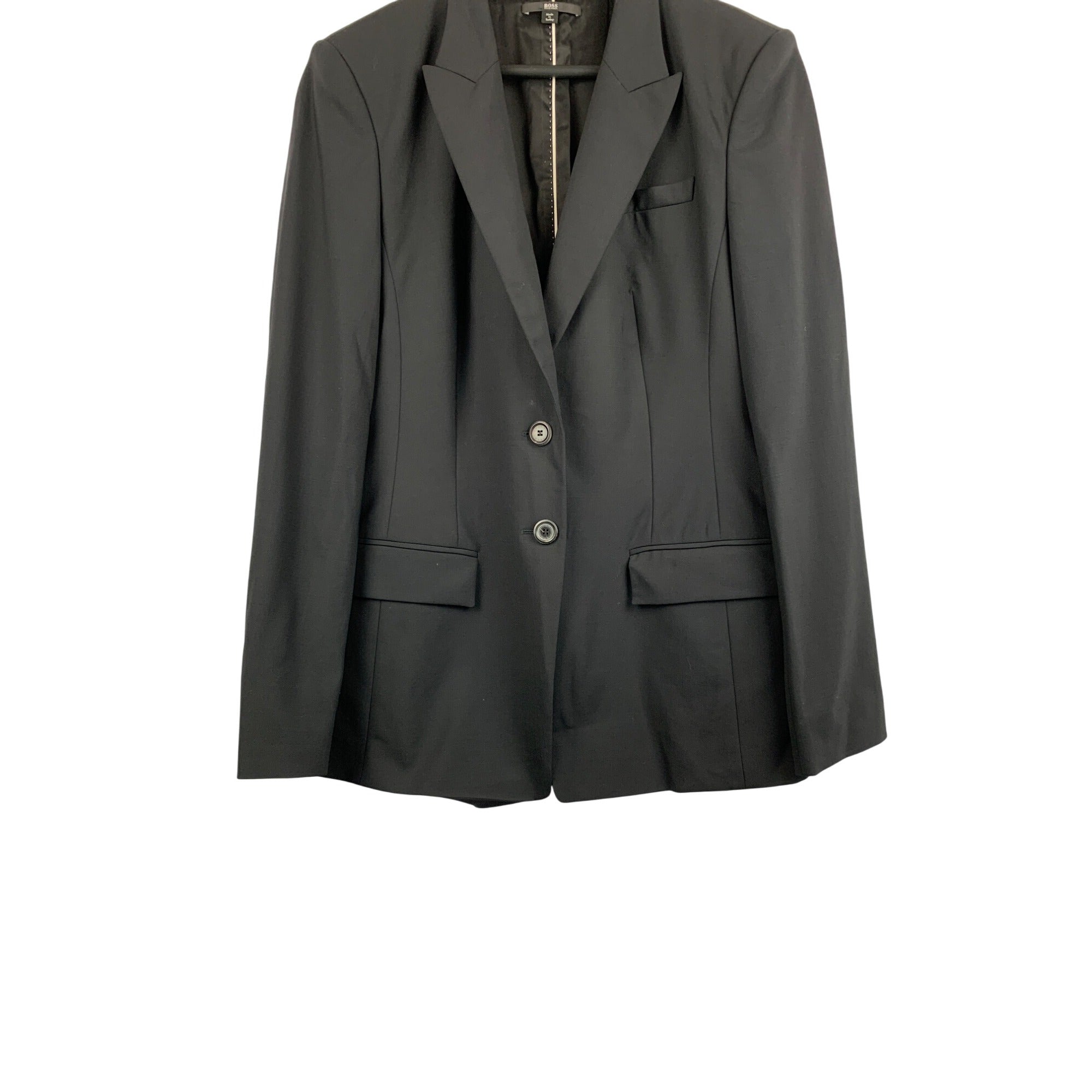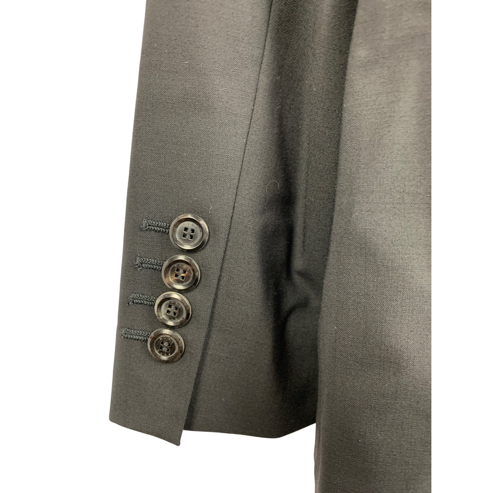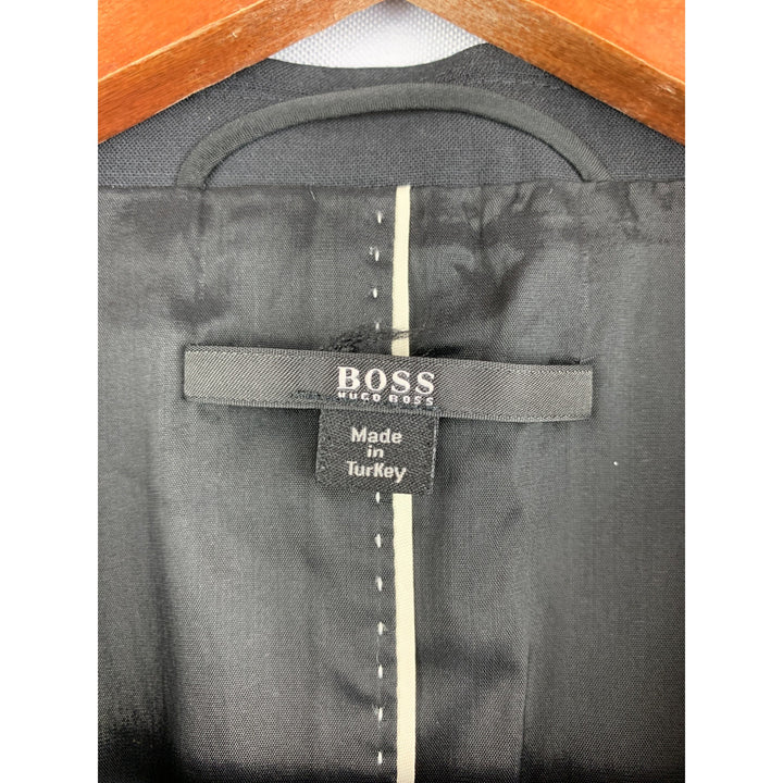 Elevate your style with this Hugo Boss black blazer. Perfect for formal occasions, this two-button suit jacket offers a sleek, modern fit that complements any attire. Ideal for discerning individuals who appreciate quality and elegance.