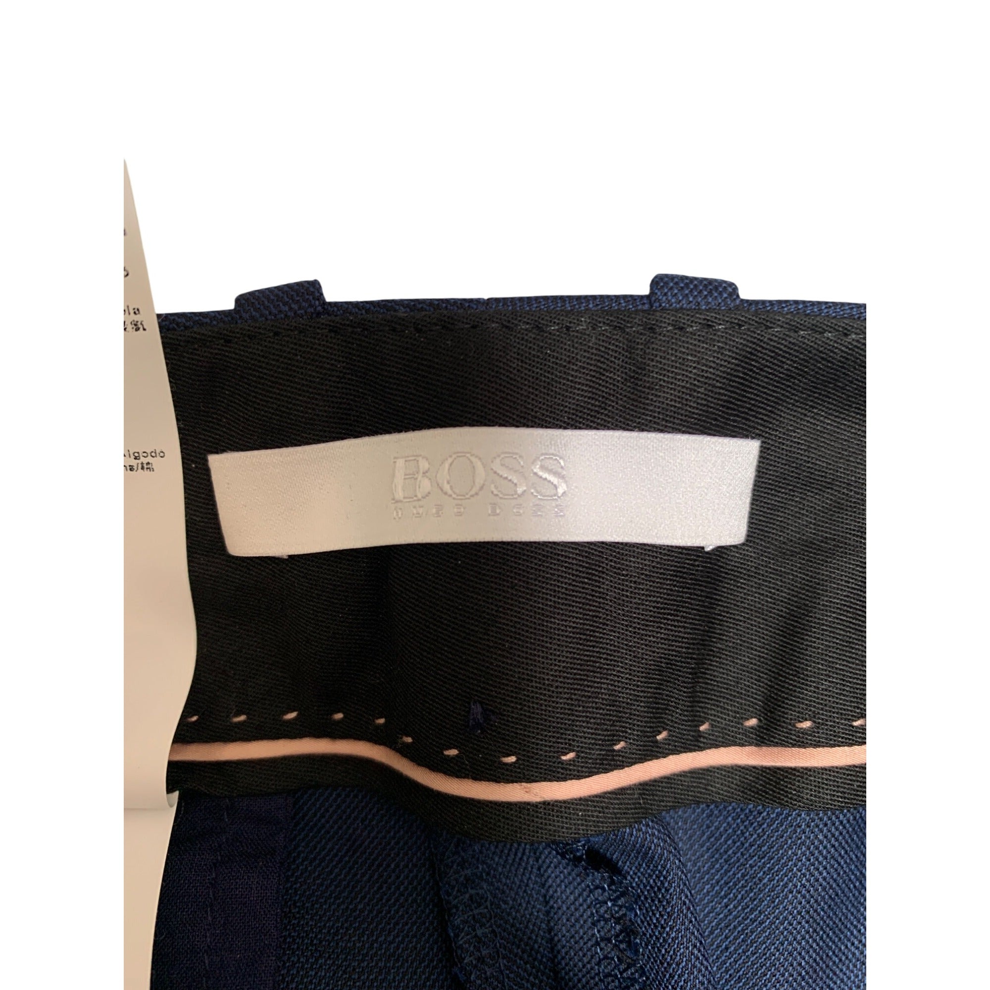Hugo Boss Mens Navy Dress Pants Size 48 Wool & Elastane Blend Slim Fit