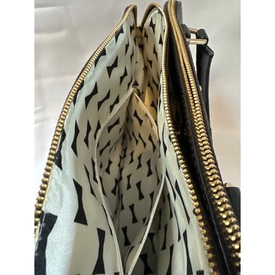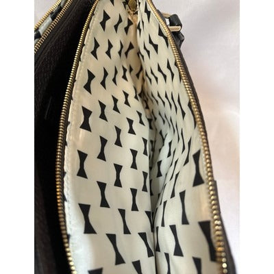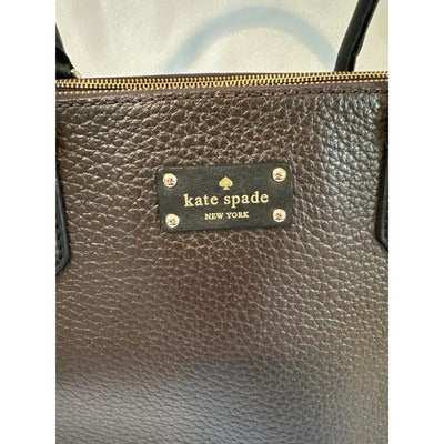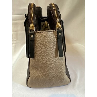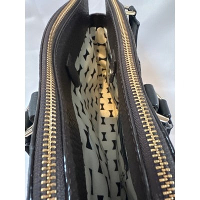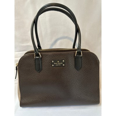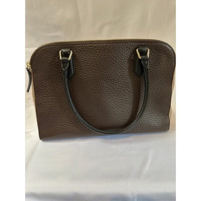 Kate Spade New York Brown & Beige Leather Satchel Bag With Double Zip Compartments & Printed Lining