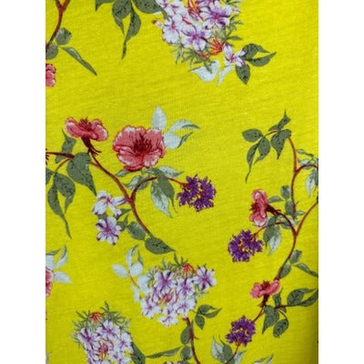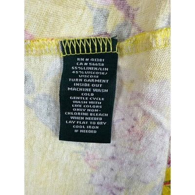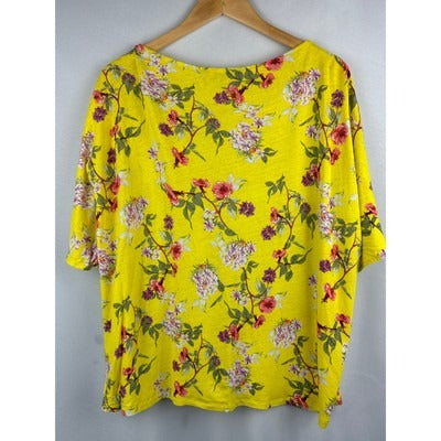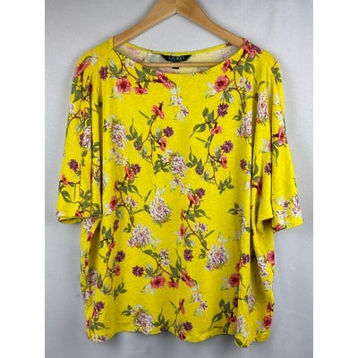 Lauren Ralph Lauren 2X Womens Yellow Floral Half Sleeve Crew Neck T-Shirt Linen Blend Relaxed Fit