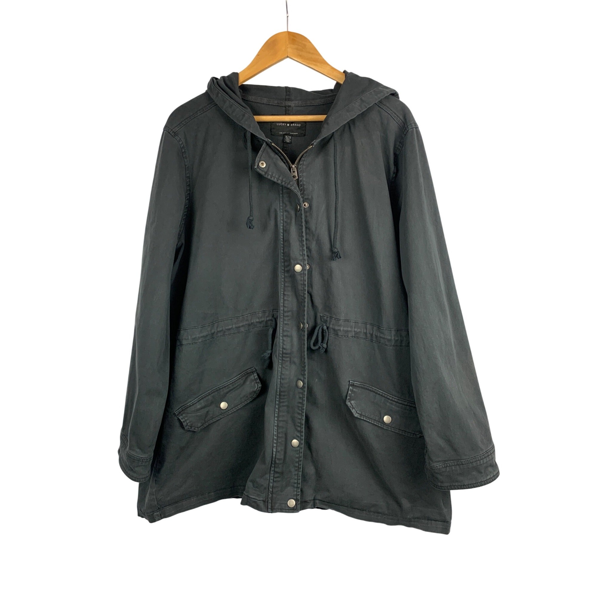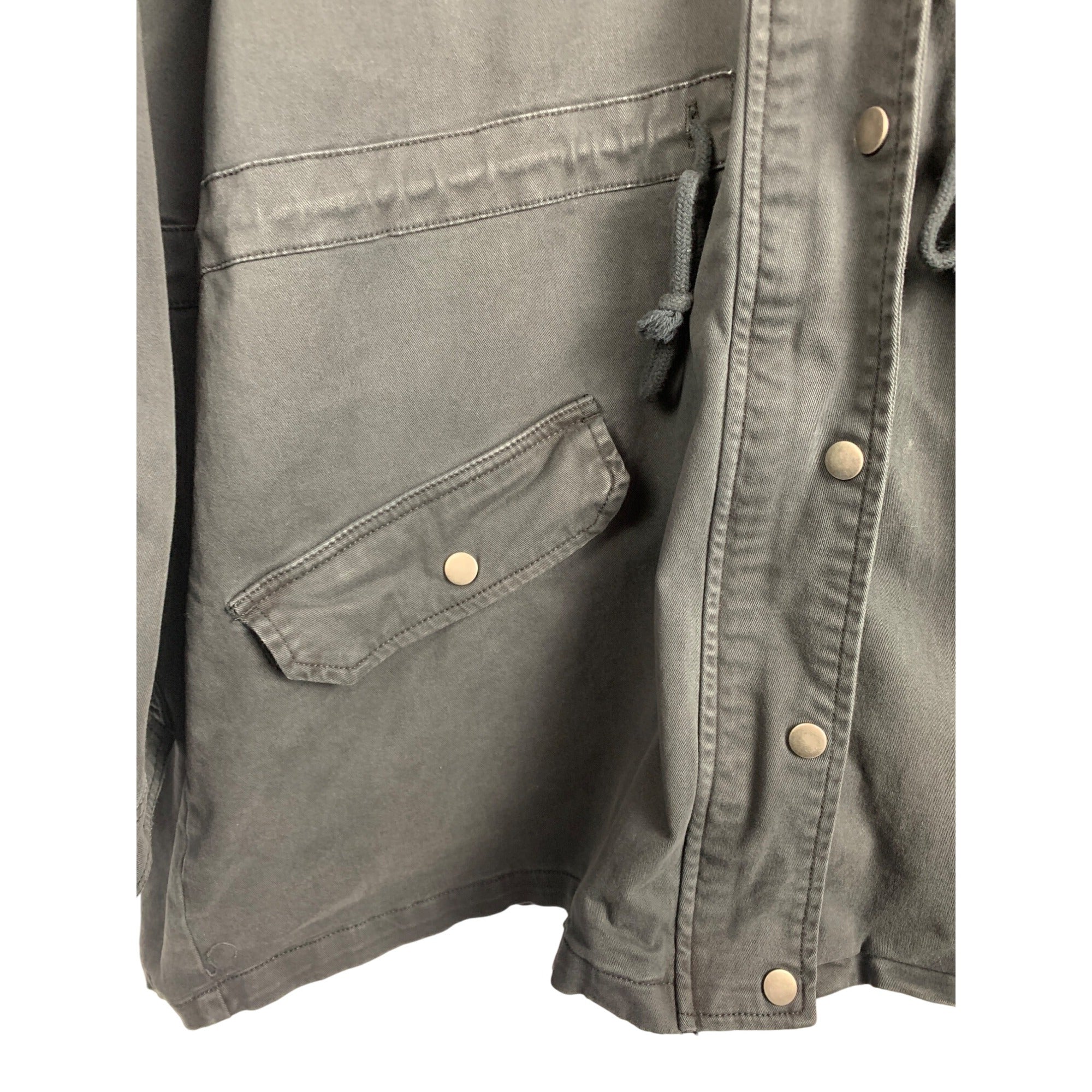 Lucky Brand XL Gray Hooded Jacket With Snap Closures & Pockets