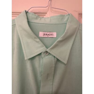 Men’s Jekaoyi Mint Green L Casual Short Sleeve Button Down Shirt