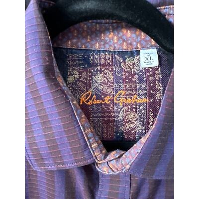 Men’s Robert Graham Purple Striped Button Down Shirt Size XL