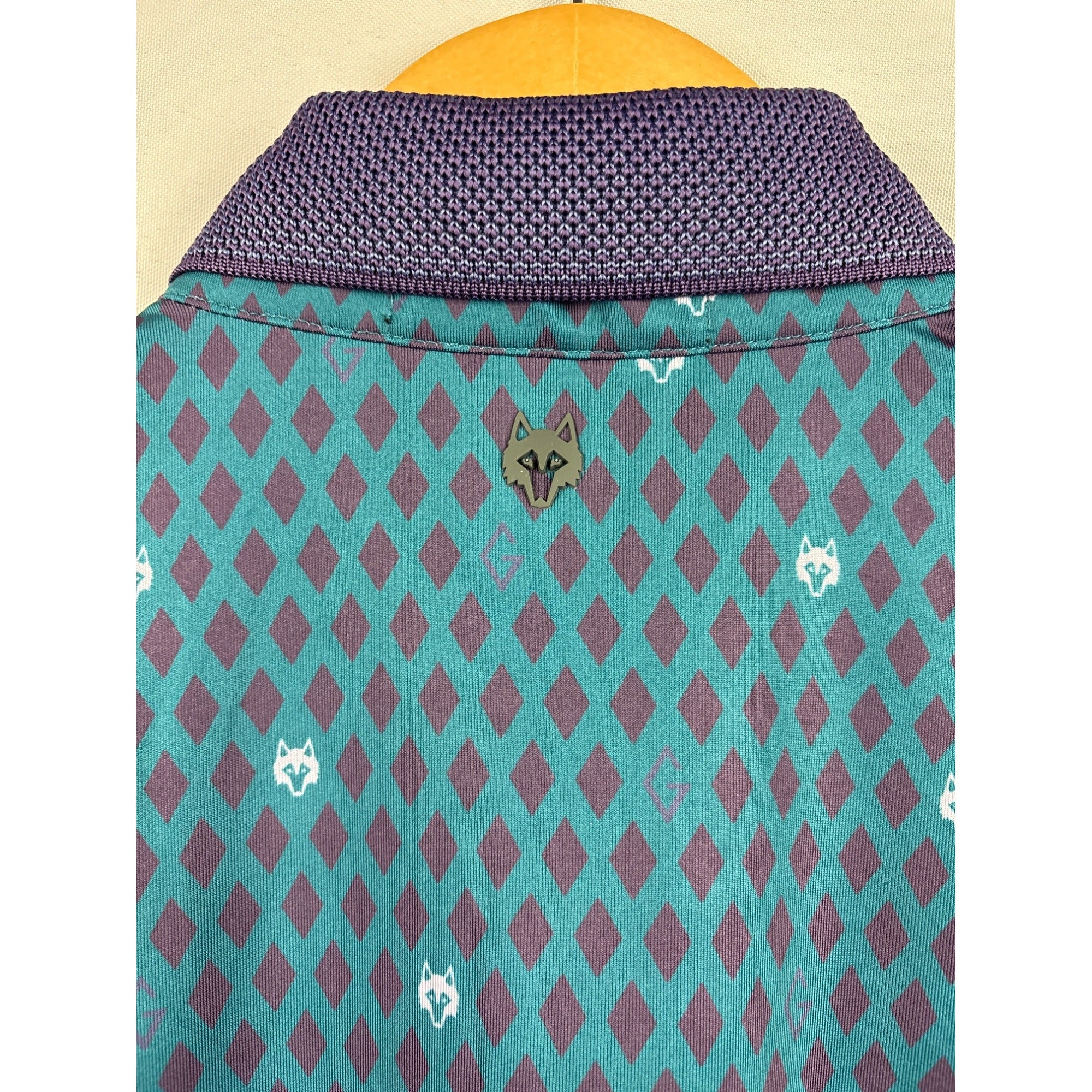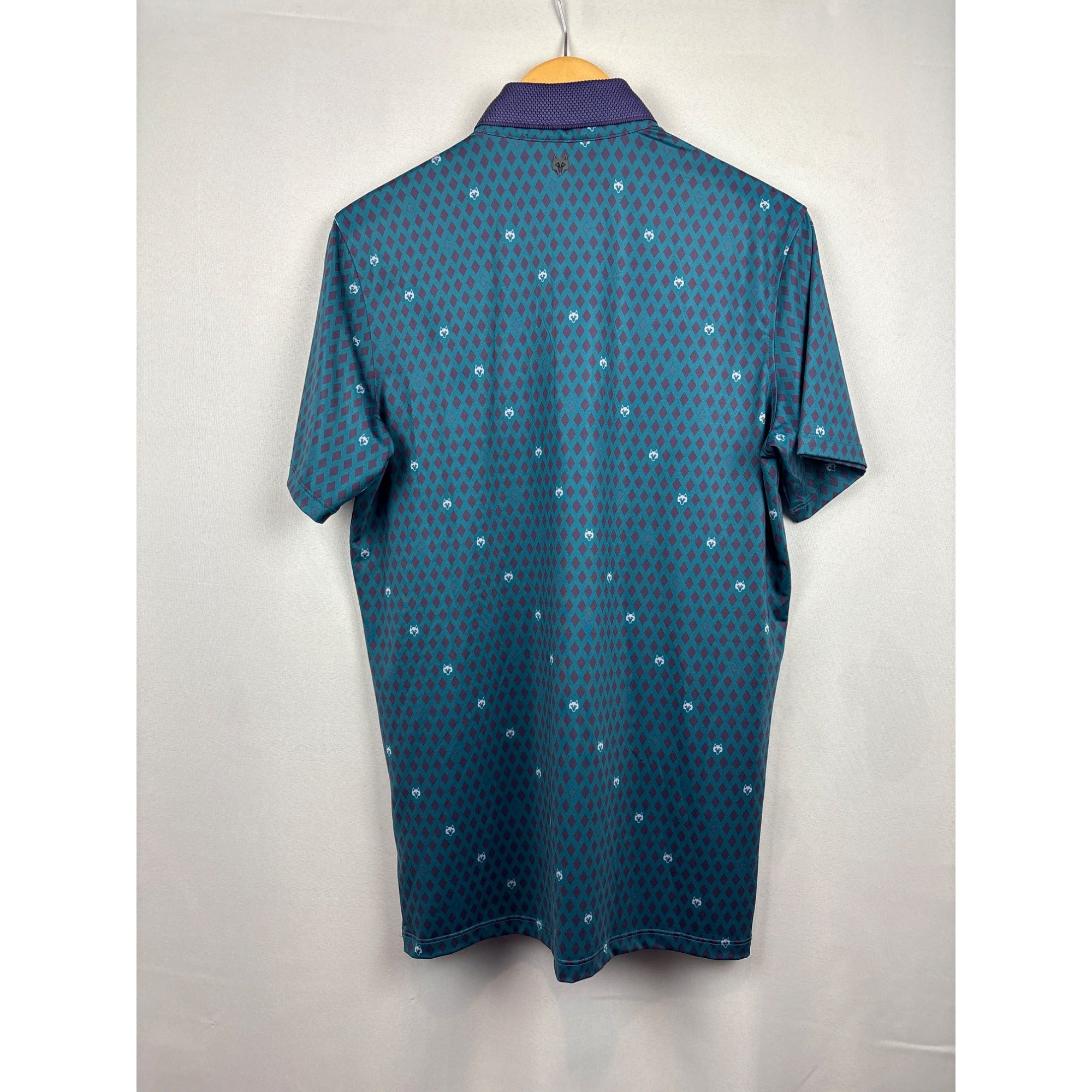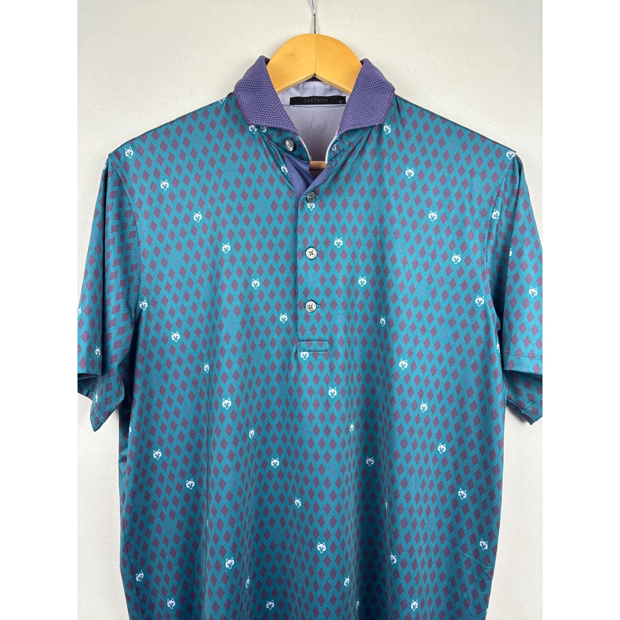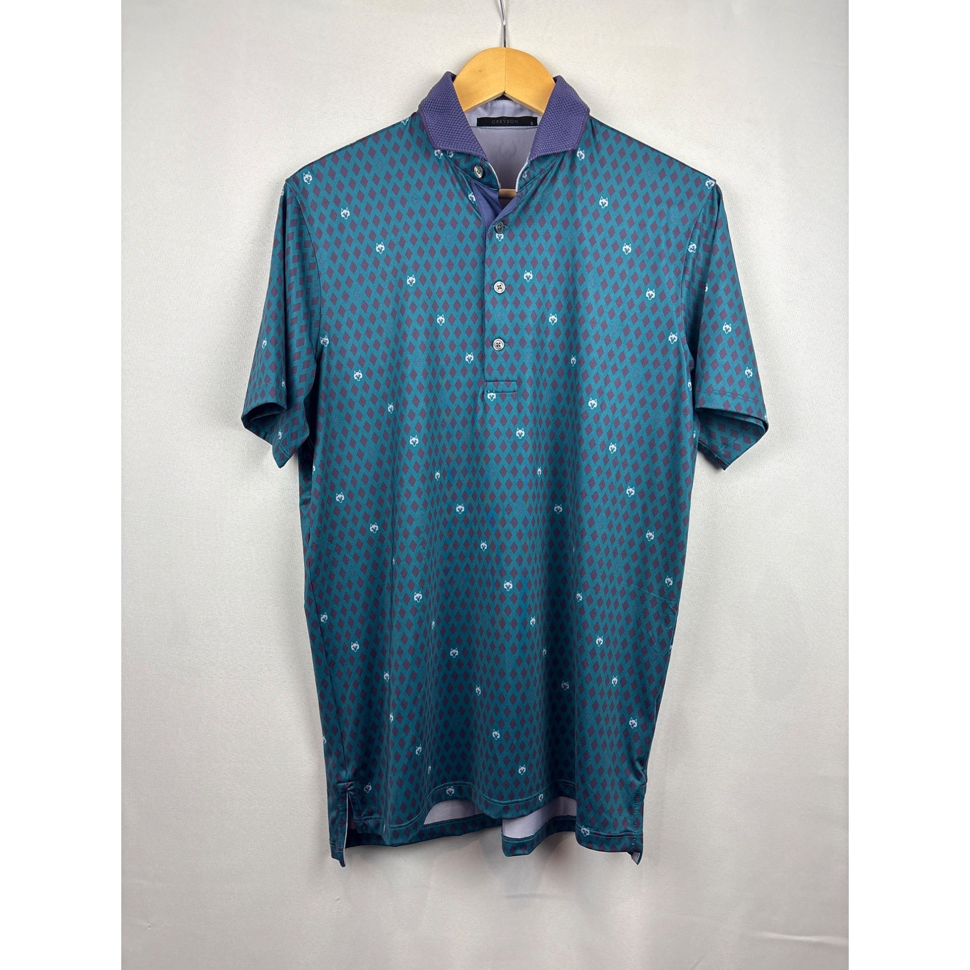 Men’s Small Greyson Teal & Burgundy Diamond Patterned Polo Shirt