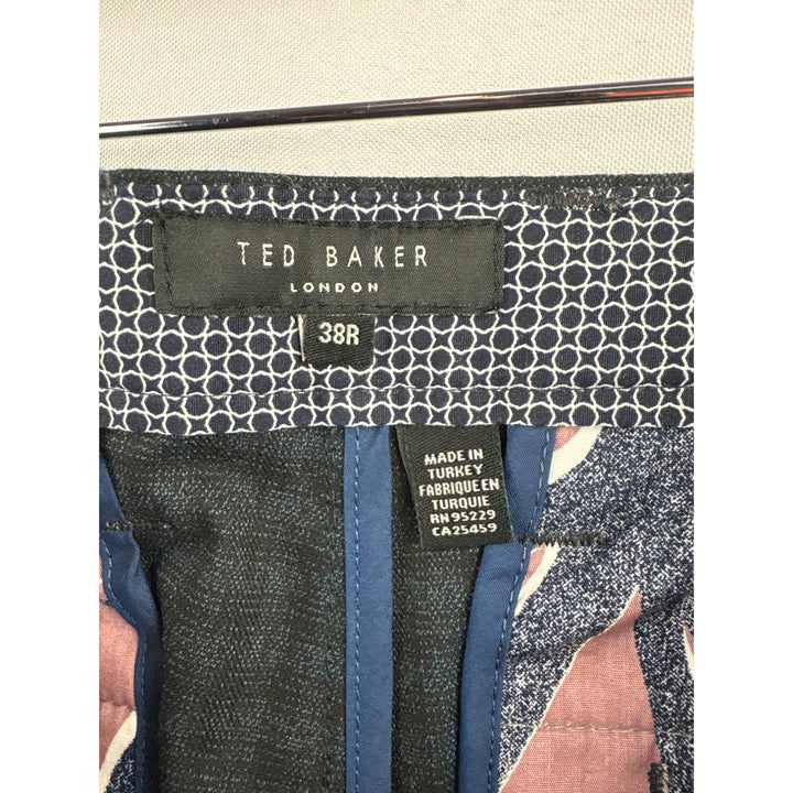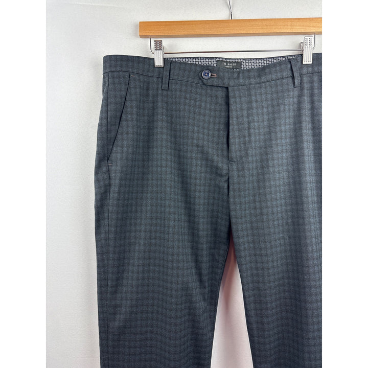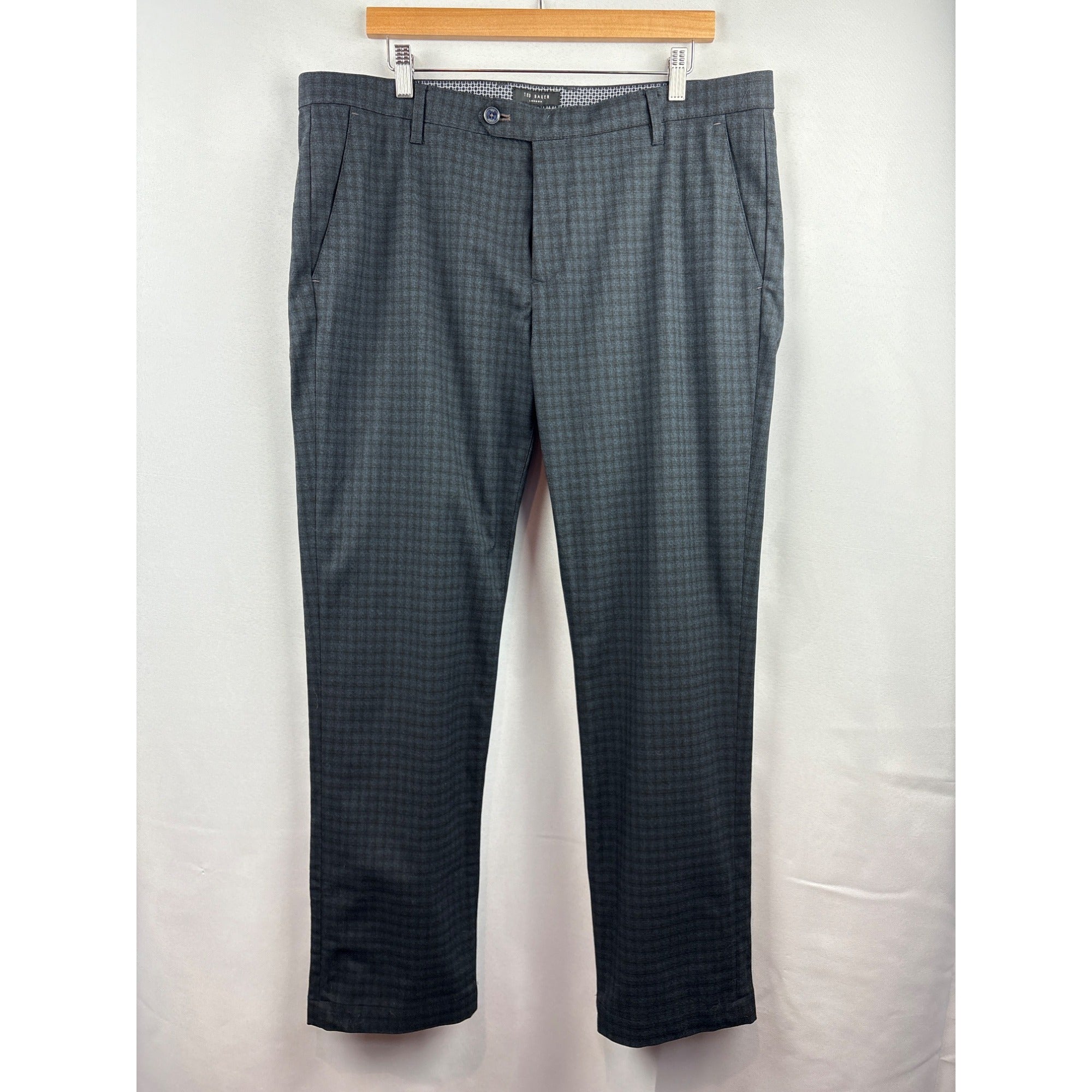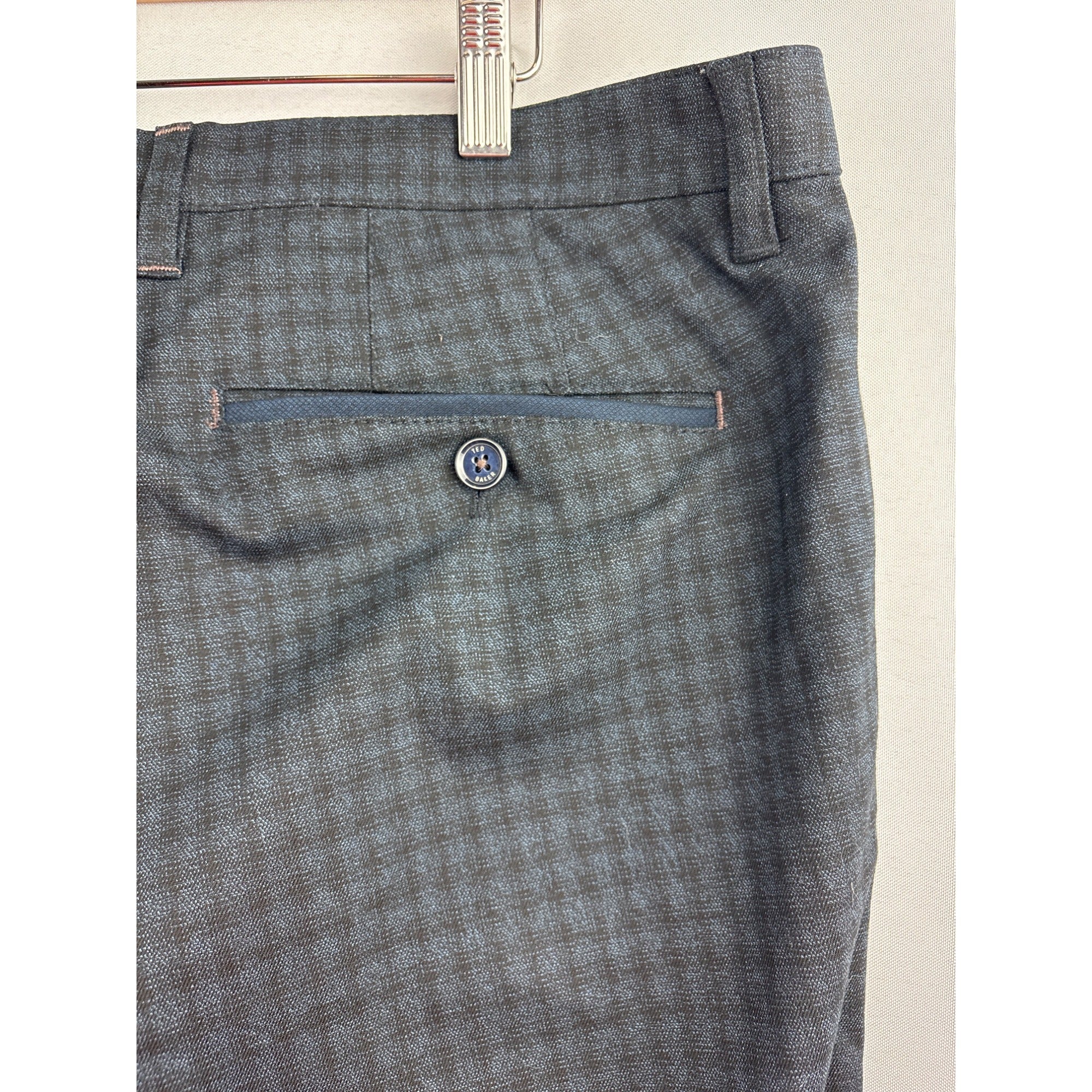 Men’s Ted Baker Size 38 Black & Dark Blue Plaid Slacks