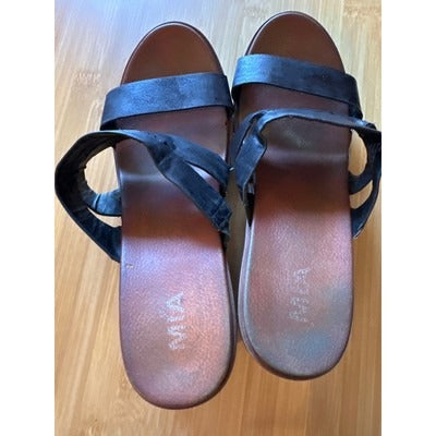 MIA Womens Black Leather Strappy Sandals Size 7.5
