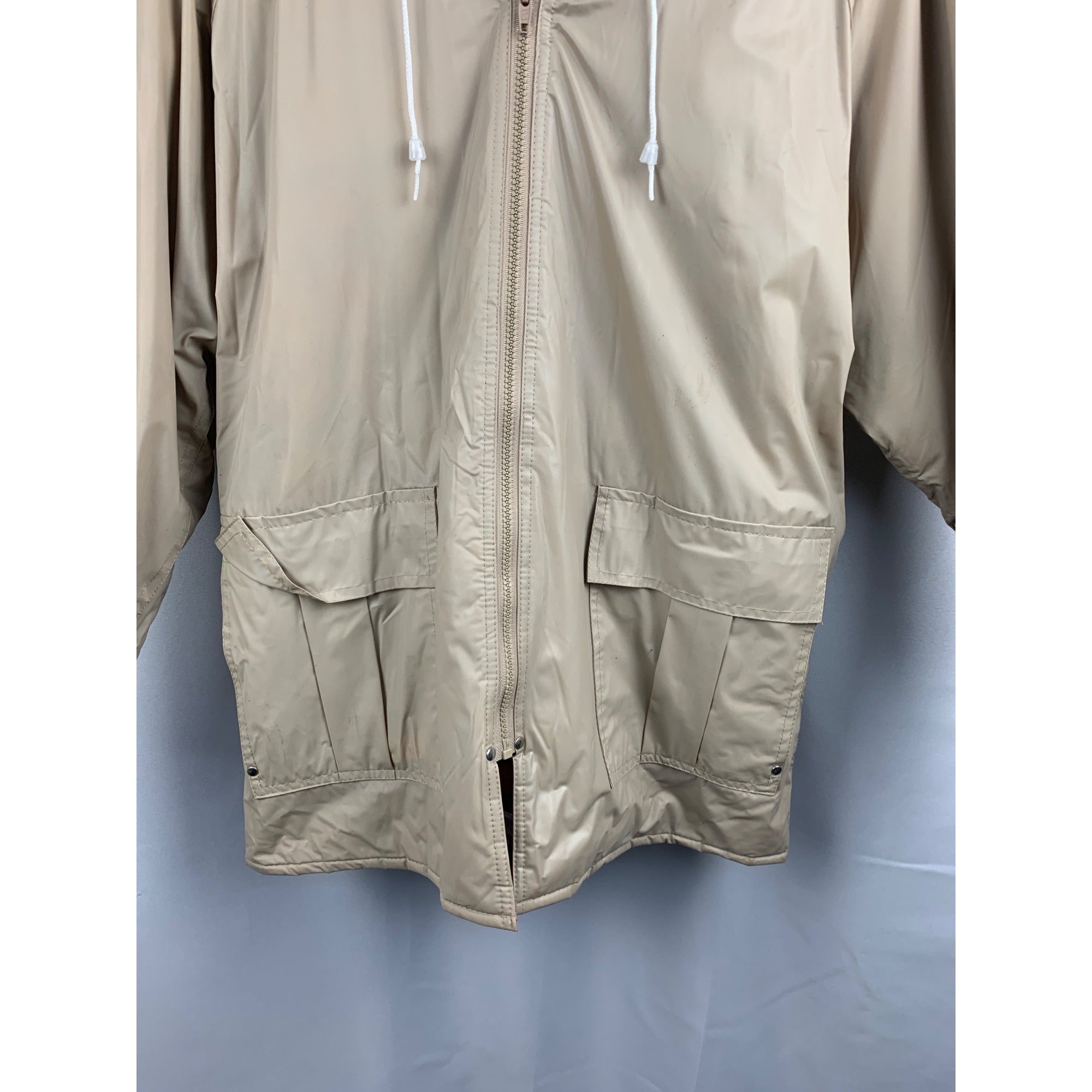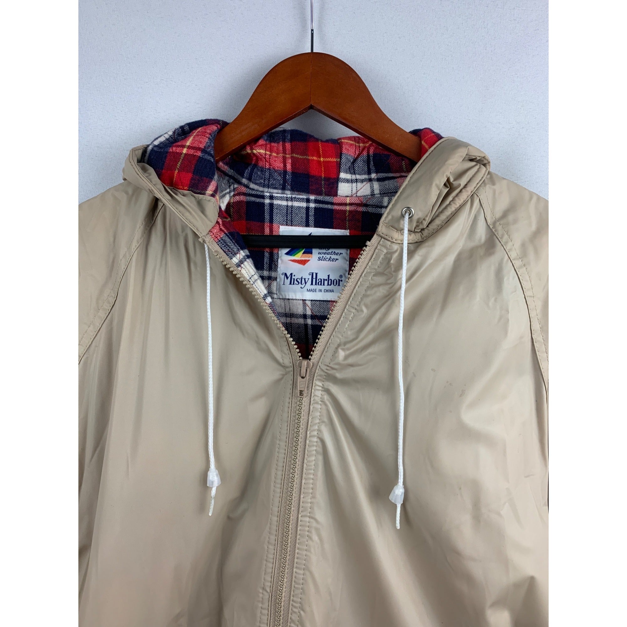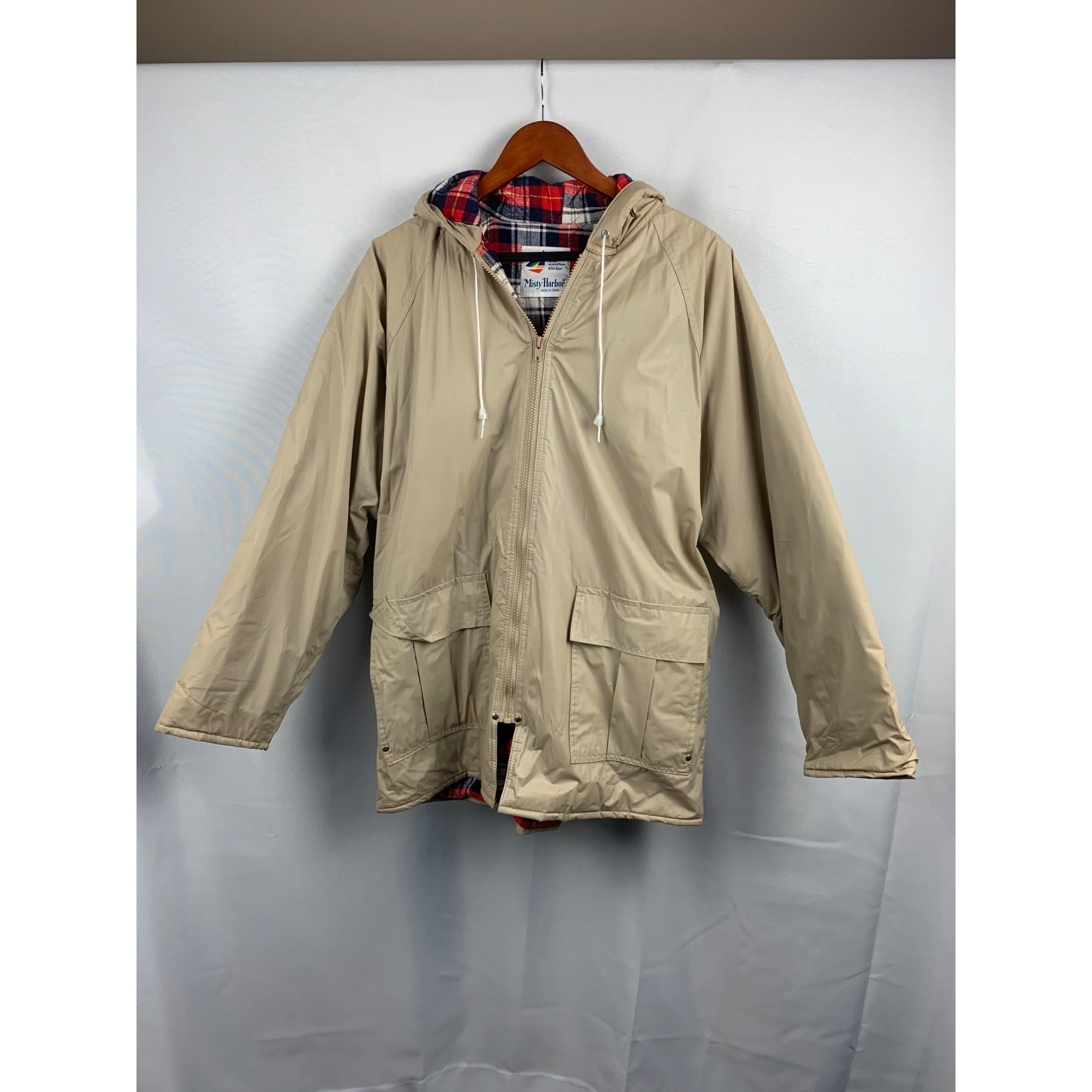 Misty Harbor Beige Hooded Raincoat With Plaid Lining & Front Pockets
