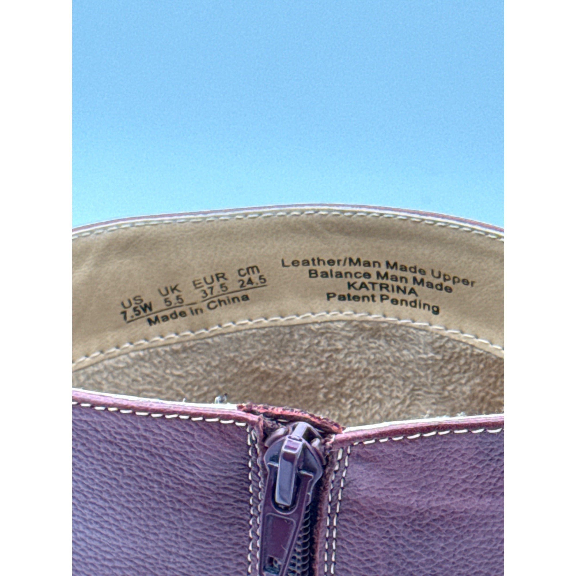 Naturalizer Womens Ankle Boots Size 7.5 Red Leather With Zipper & Buckle Detail
