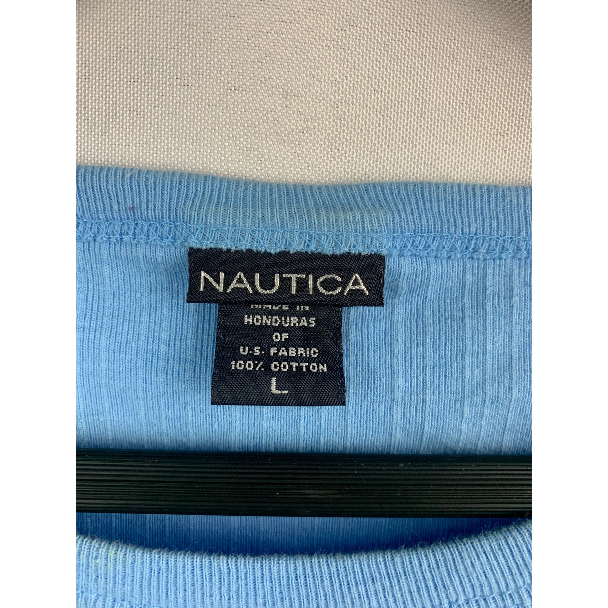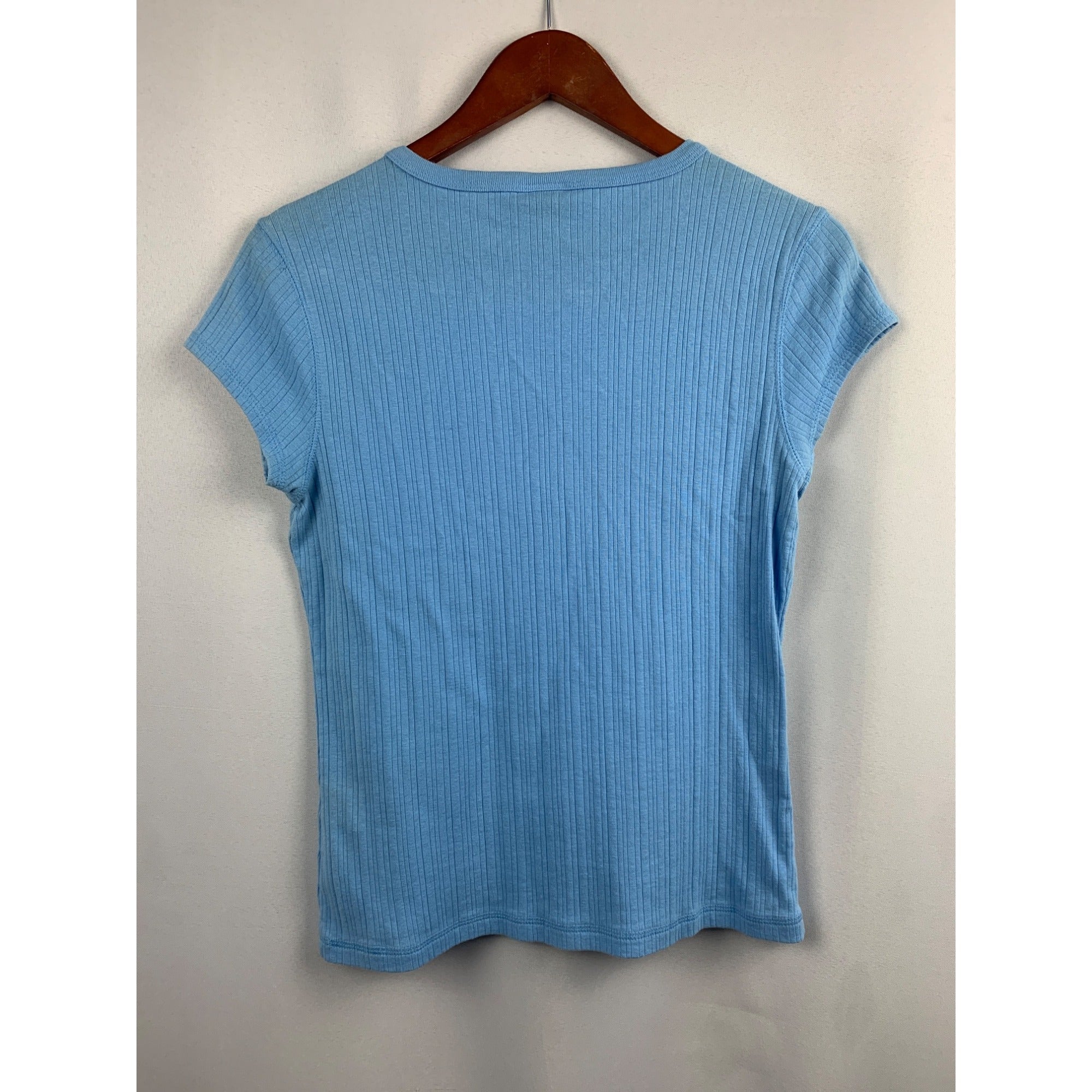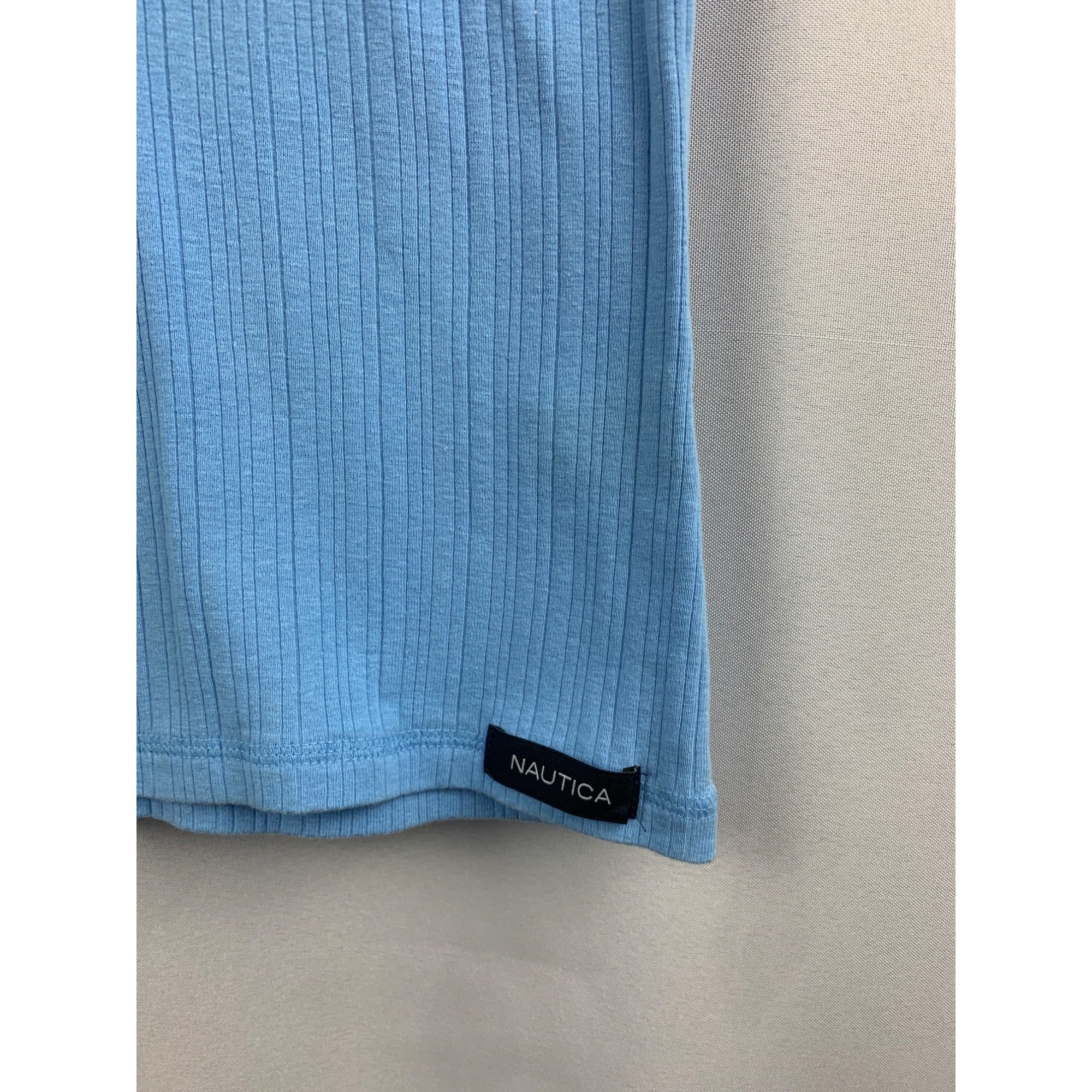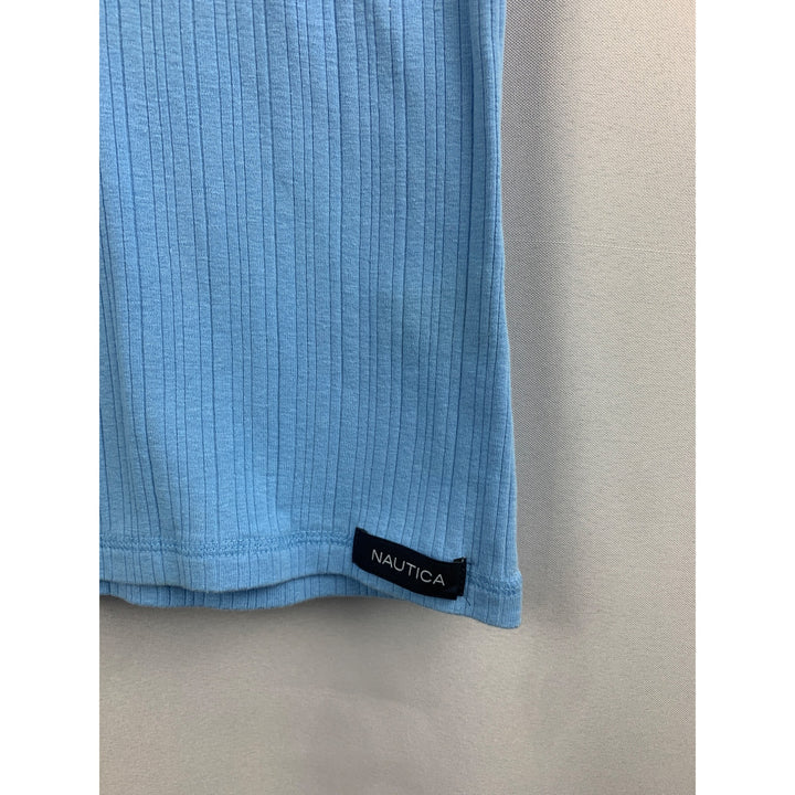 Nautica Womens Light Blue Ribbed Short Sleeve Tee - Size L