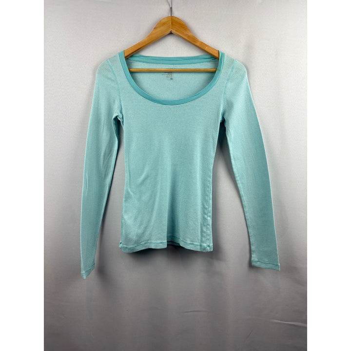 Old Navy Womens Small Long Sleeve Light Blue Striped Shirt