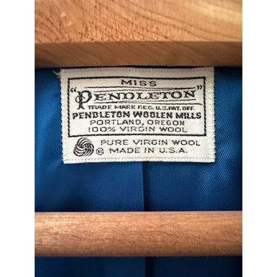 This is circa 1980’s in pristine condition. 100% Virgin Wool from Pendleton, OregonYou don’t find items like these very often.The lining is completely intact and has been stored with care so no odors or sign of any wear and tear.Please note the measurements as a size 12 of the 1980’s is probably more of an 8-10 today depending on your frame. Blazer has two pockets that are still sewn shut but could be opened.There is even an extra button sewn inside.One button closureLength 22.5”Sleeve 23”Pit to pit 19”