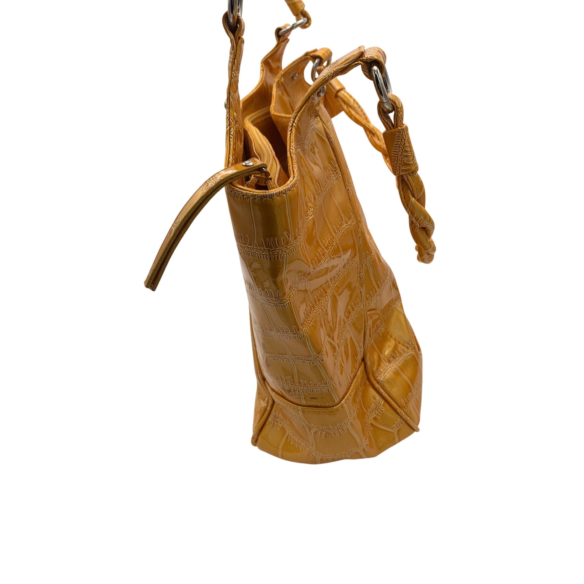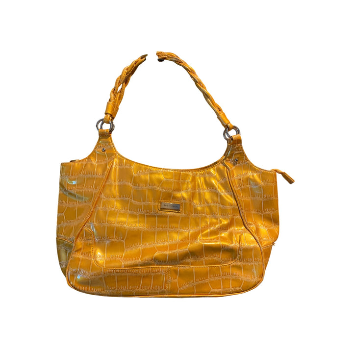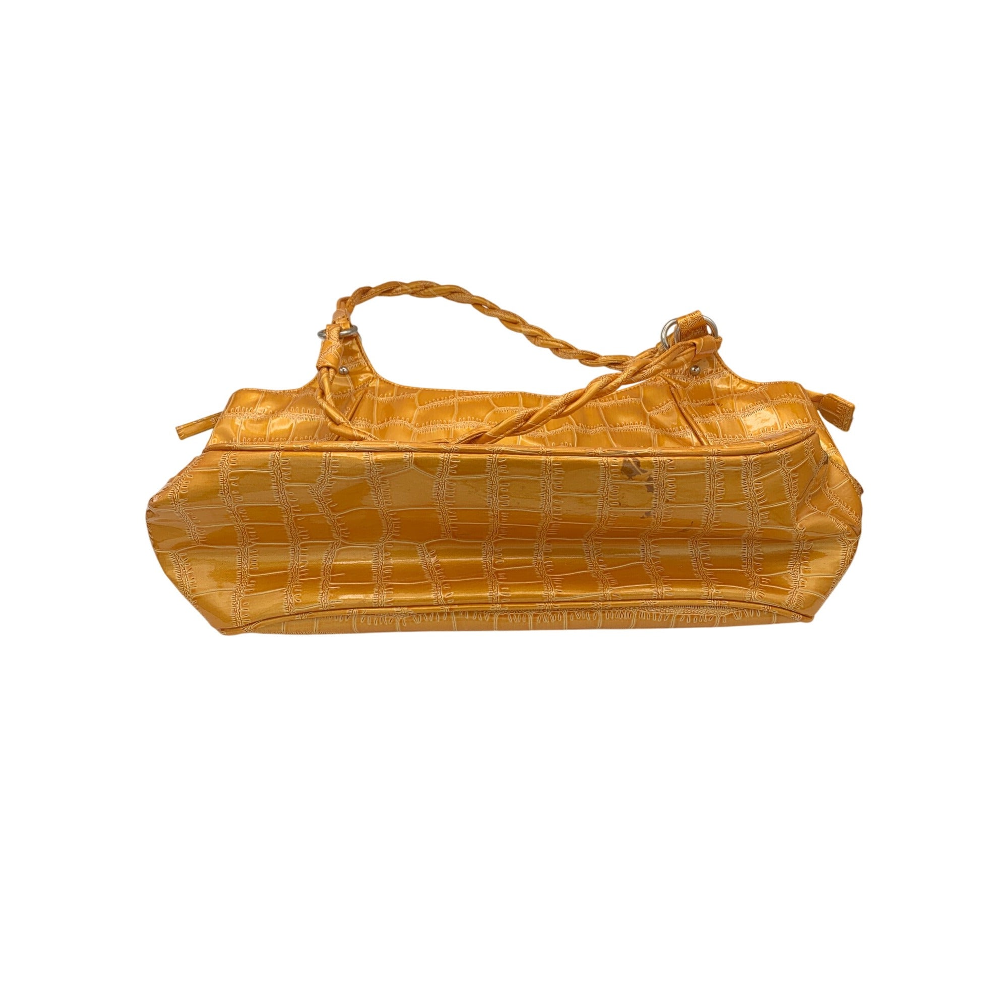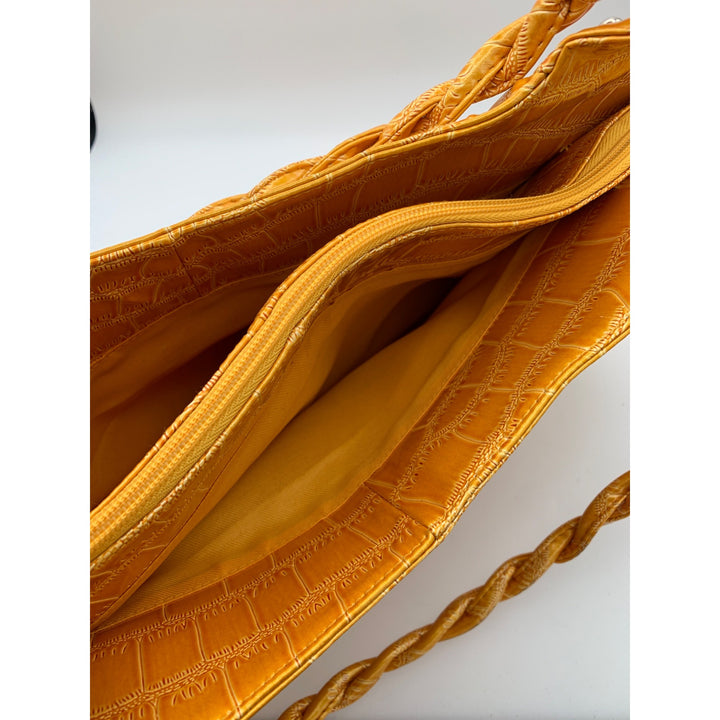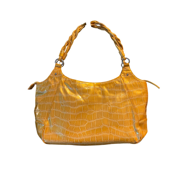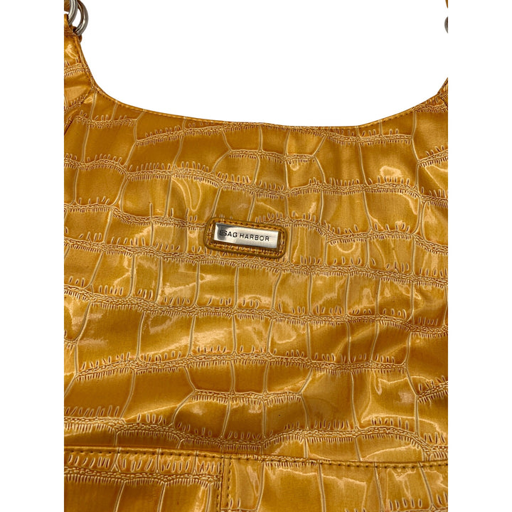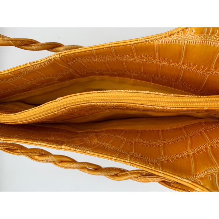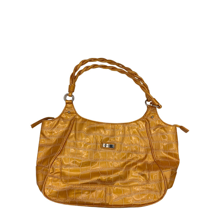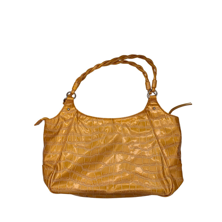 Sag Harbor Faux Croc Embossed Gold Shoulder Bag With Braided Handles