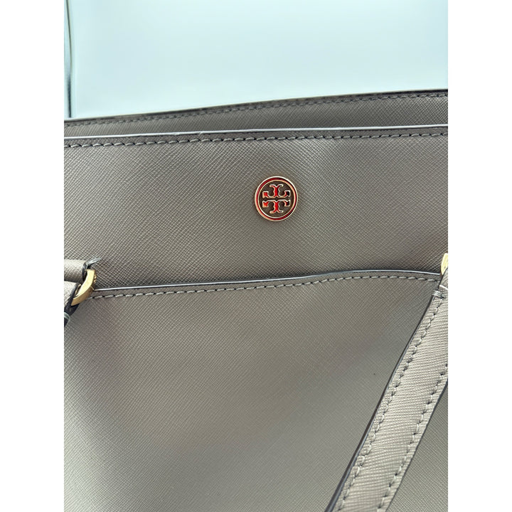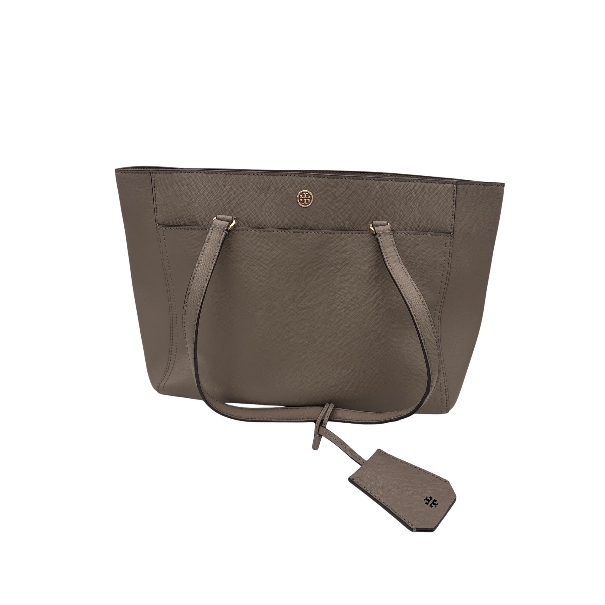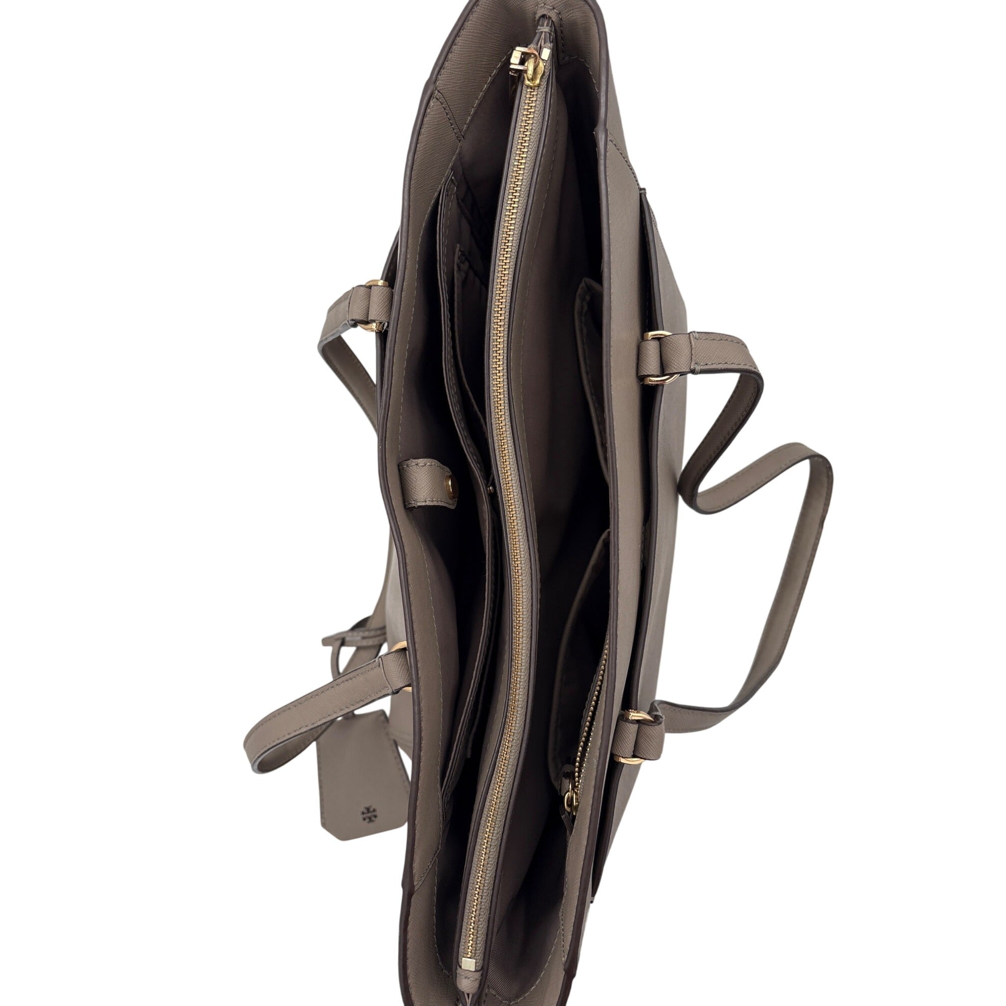 Tory Burch Perry Triple-Compartment Tote Bag Gray Leather