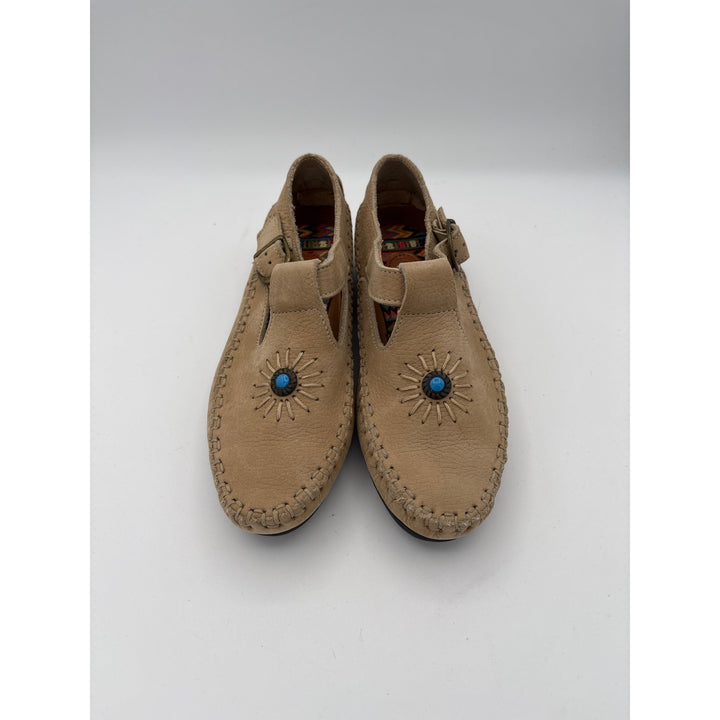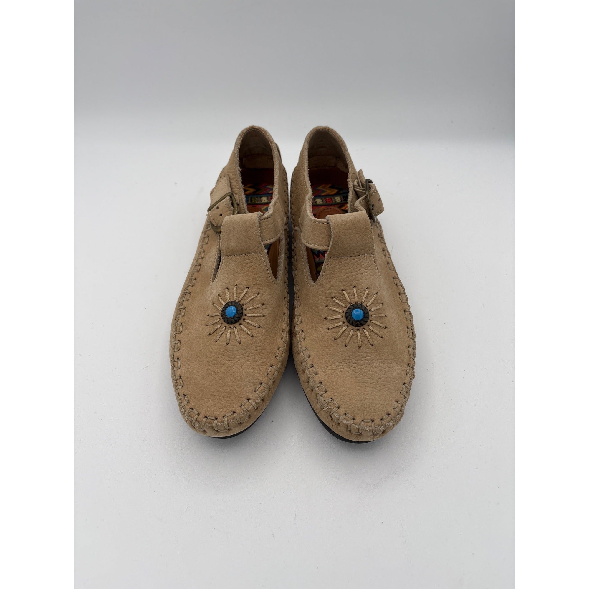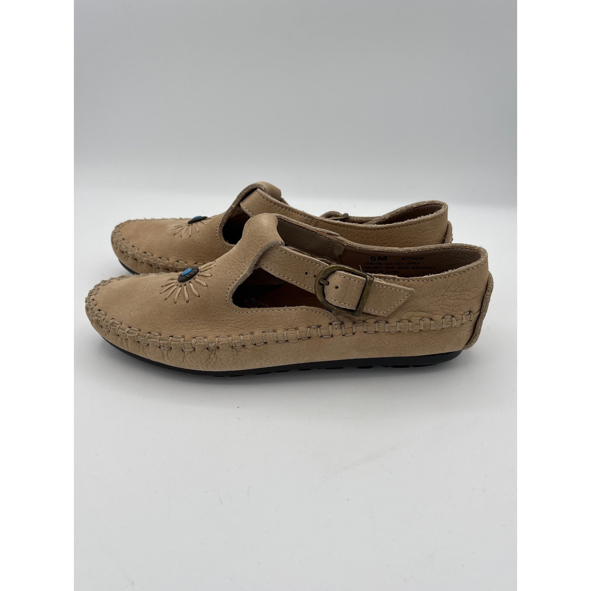 Vintage Hush Puppies Womens Leather Embroidered Moccasin Flats Size 5M Beige