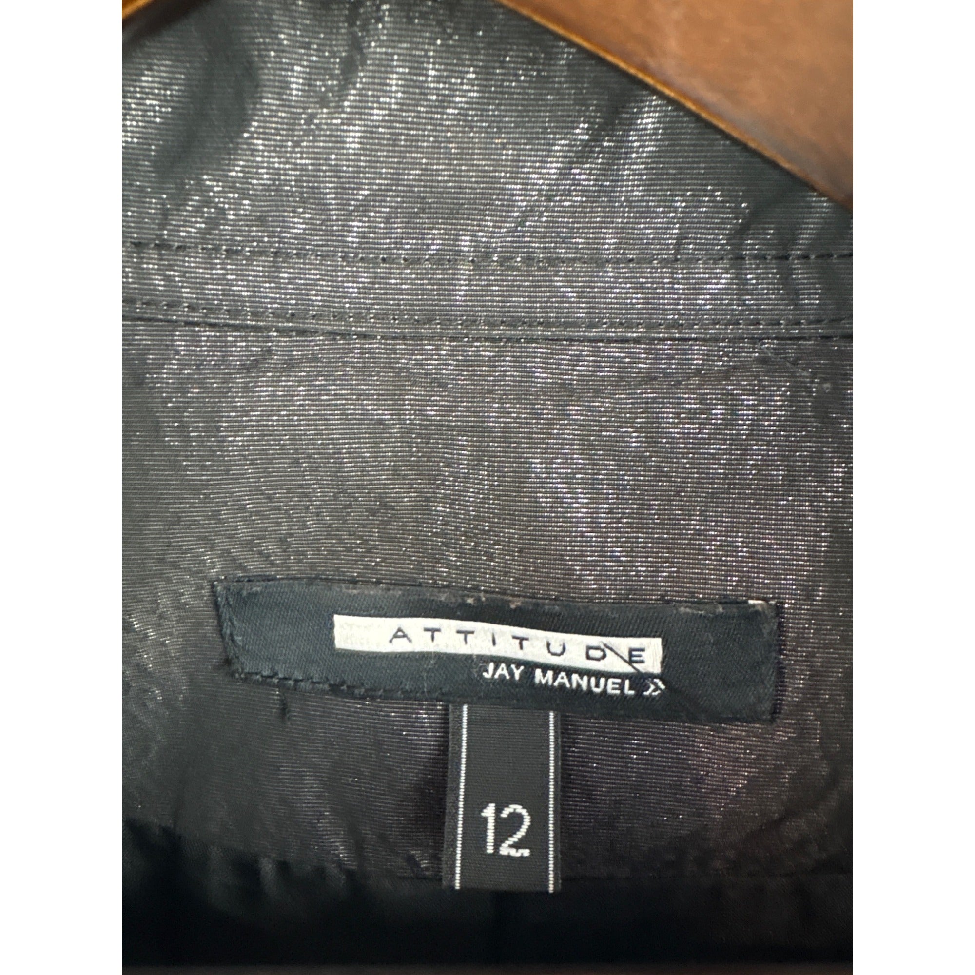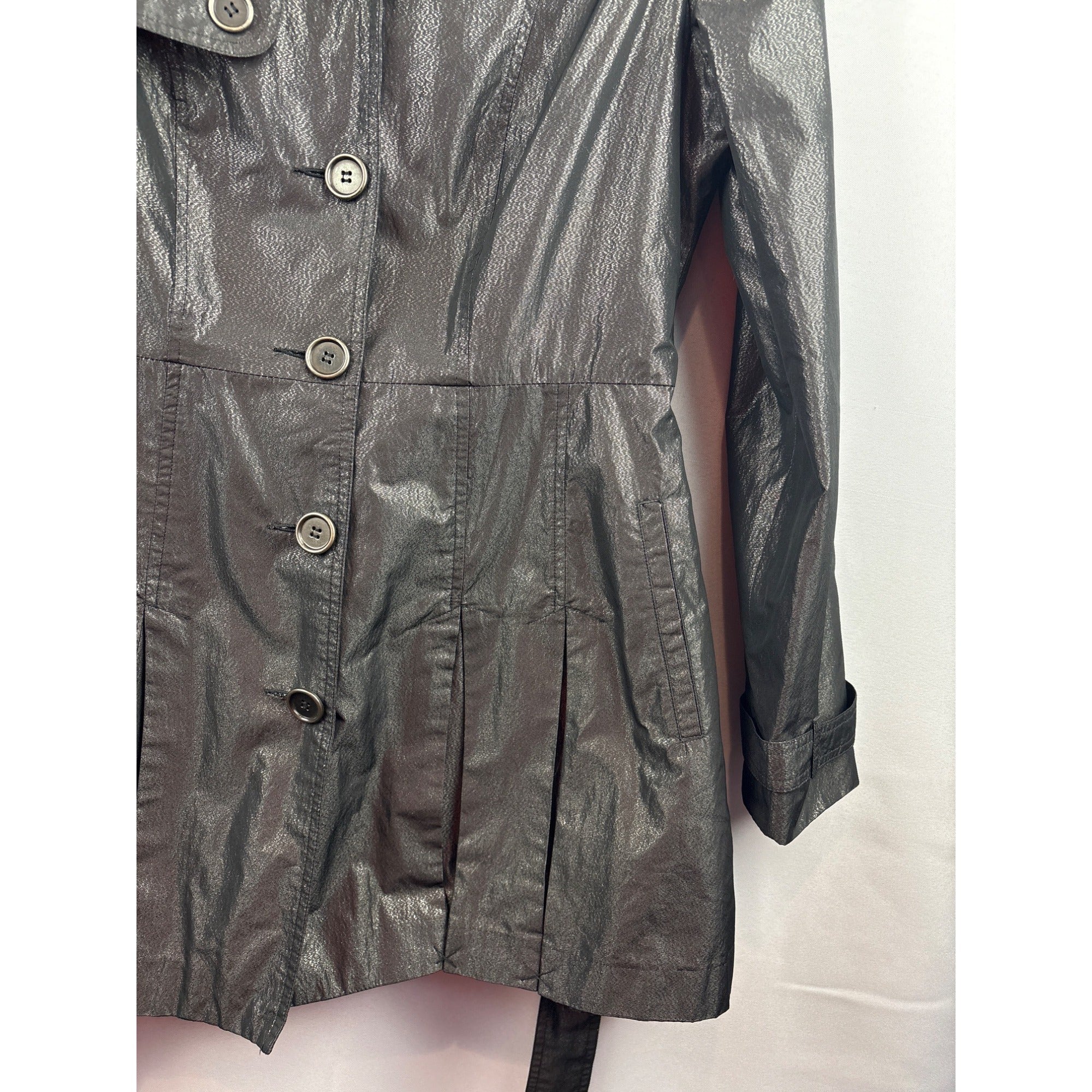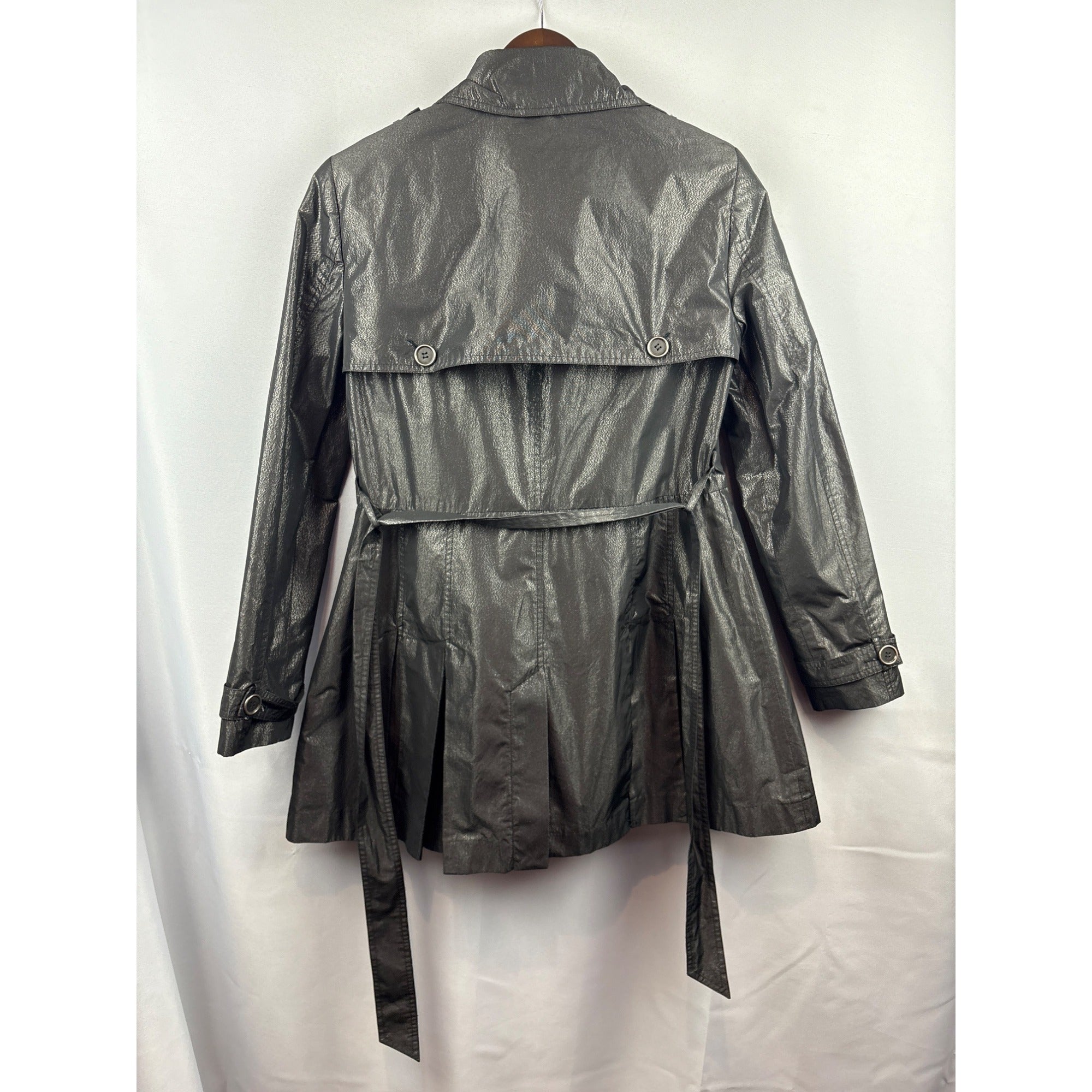 Women’s Attitude by Jay Manuel Size 12 Shiny Black/Grey Trench Coat with Removable Belt