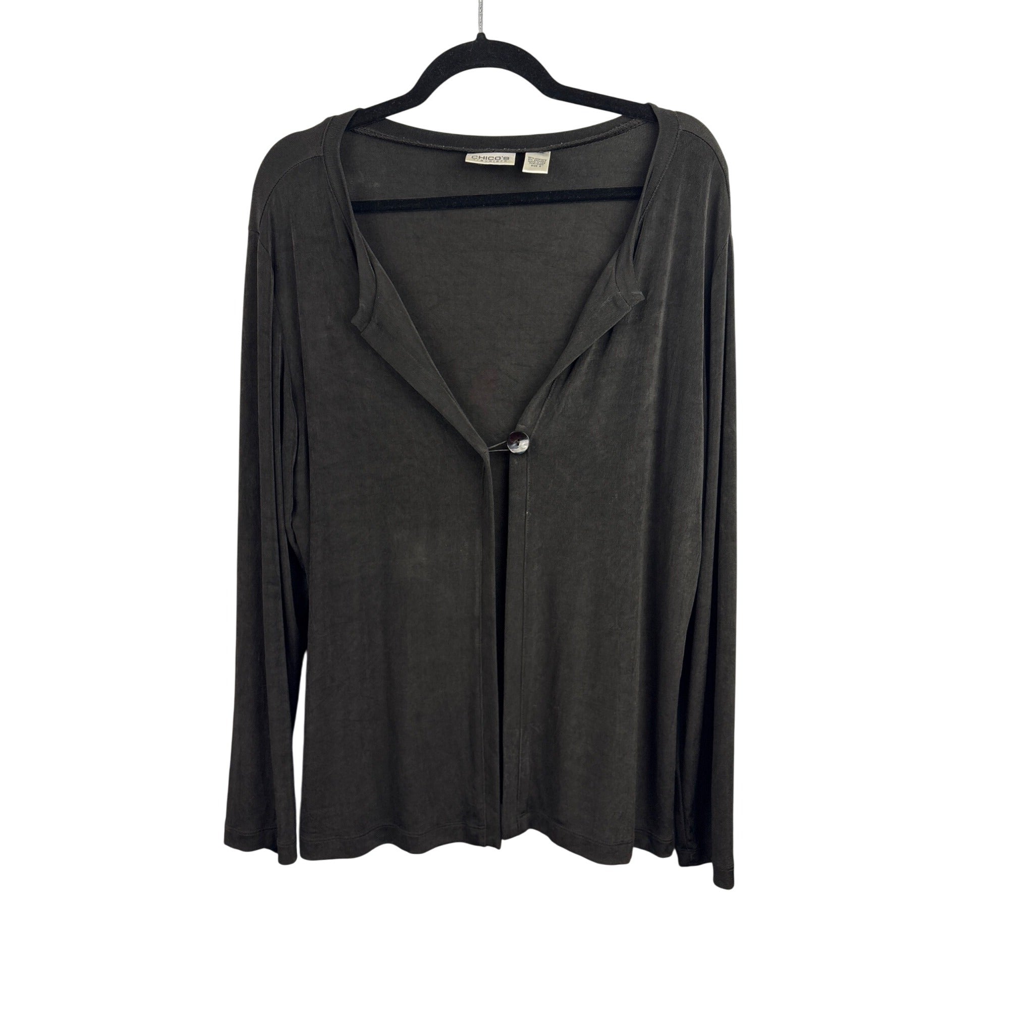 Women’s Chico’s Size 2XL Dark Grey Long Sleeve Cardigan with Single Shell Button