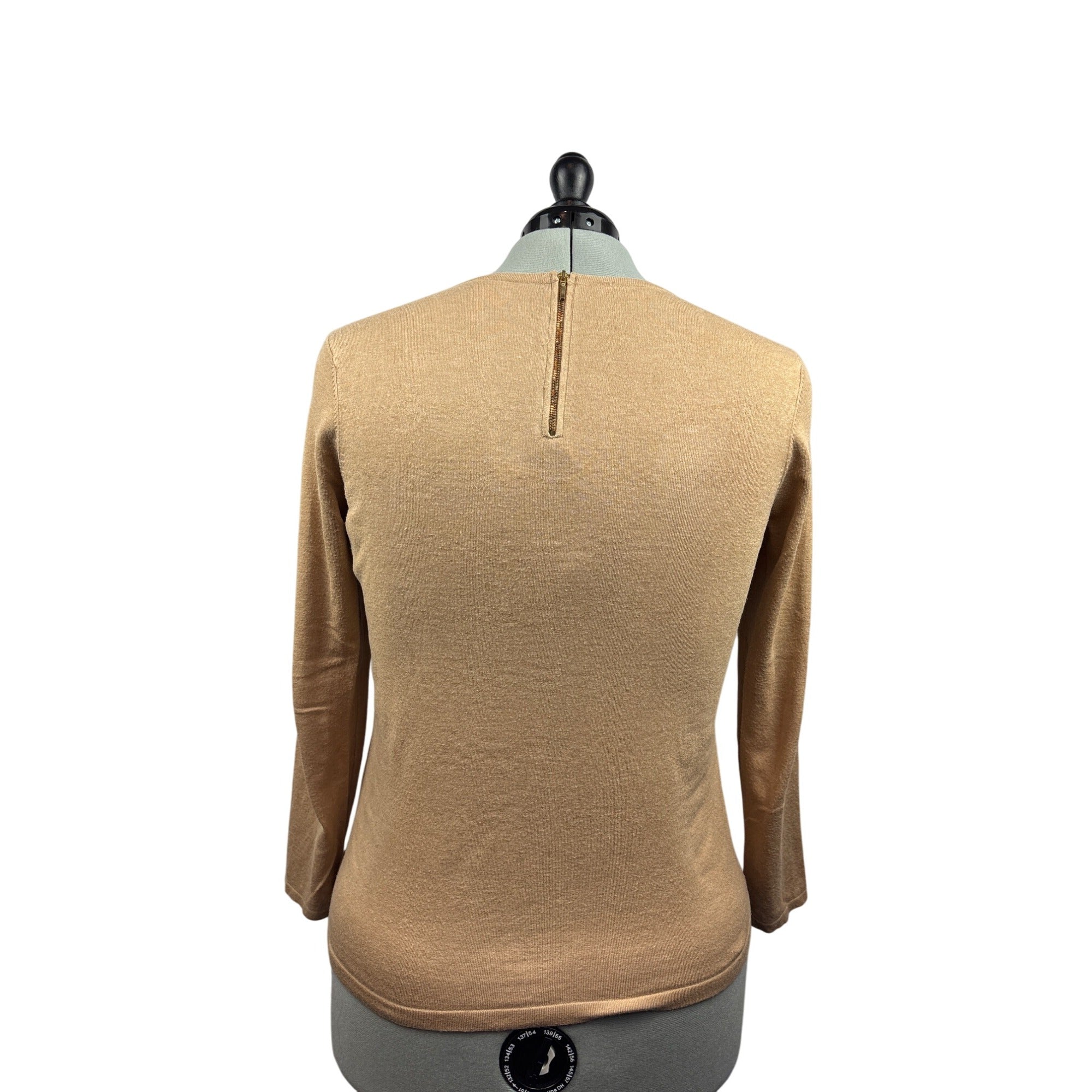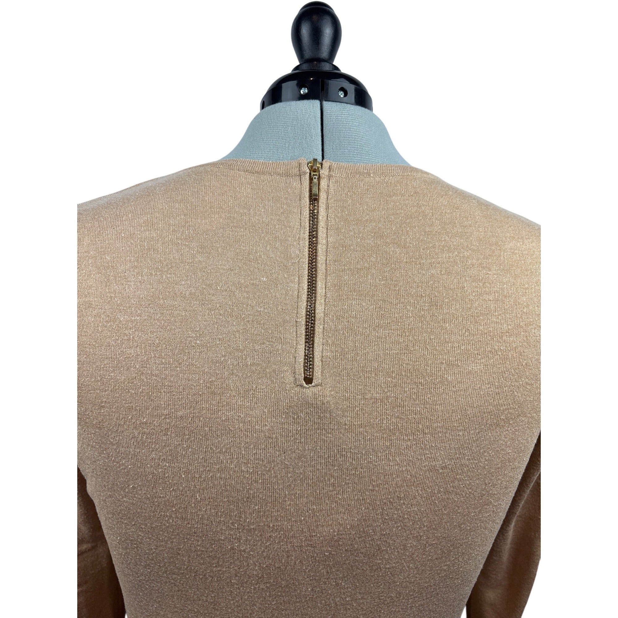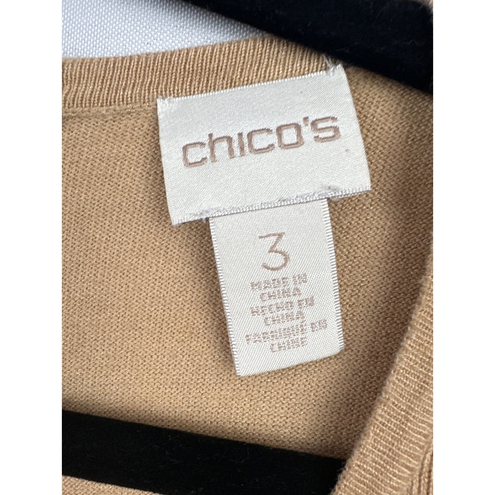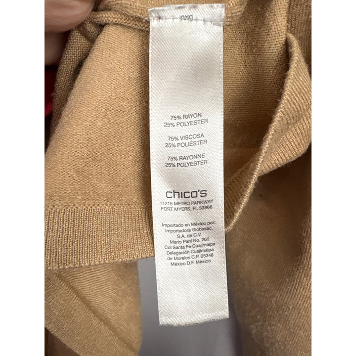 Women’s Chico’s Size 2XL Tan Long Sleeve Knit Shirt with Gold Back Zipper