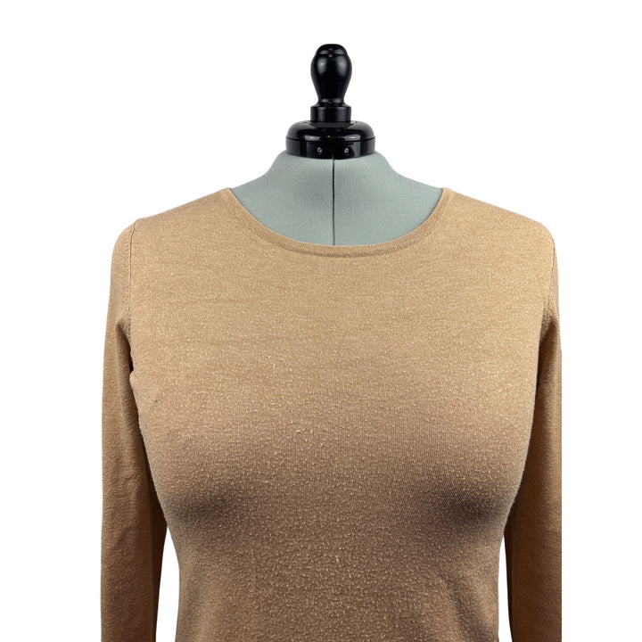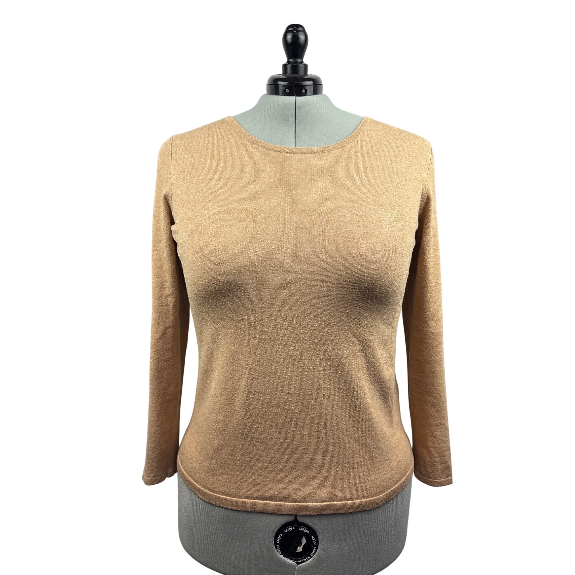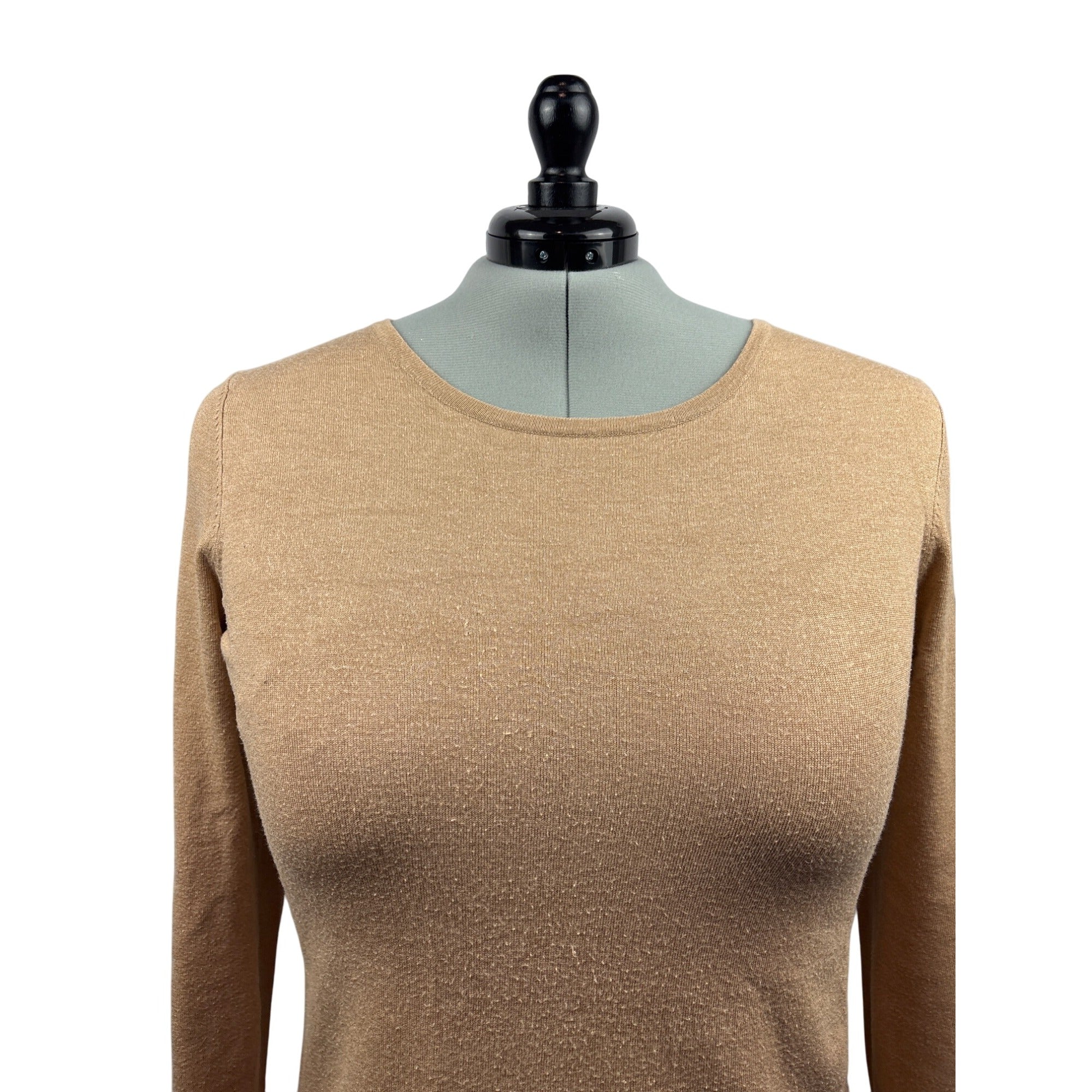 Women’s Chico’s Size 2XL Tan Long Sleeve Knit Shirt with Gold Back Zipper