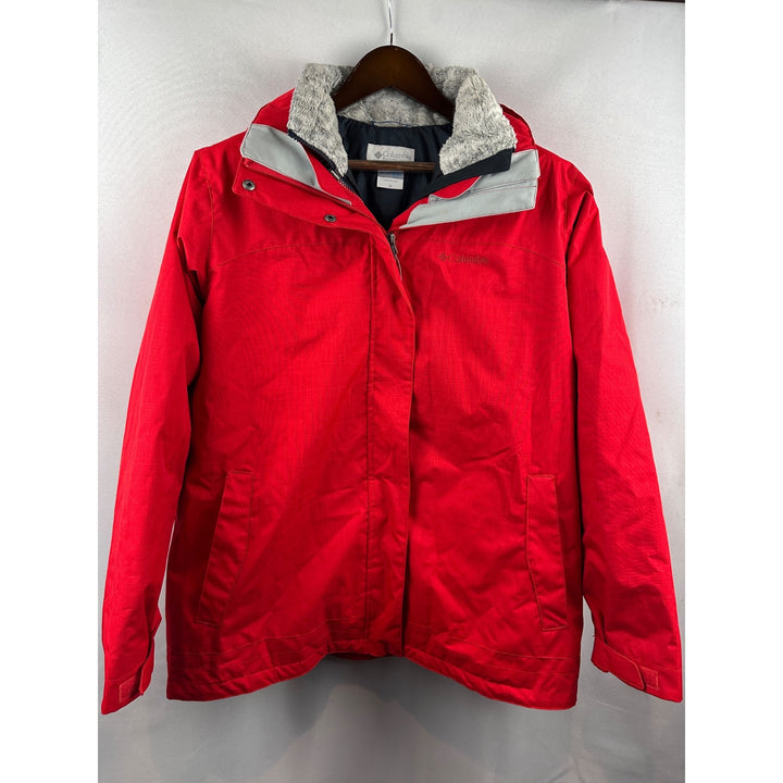 Stay warm in style with the Women's Columbia Interchange Winter Coat in bold red, size 1X. This hooded, multi-season coat is built for serious cold, featuring a removable interior lining that transforms it from a snow-ready jacket to a lighter spring/fall layer. Brand-new and never worn, it’s ready to take on winter adventures and everyday wear.
