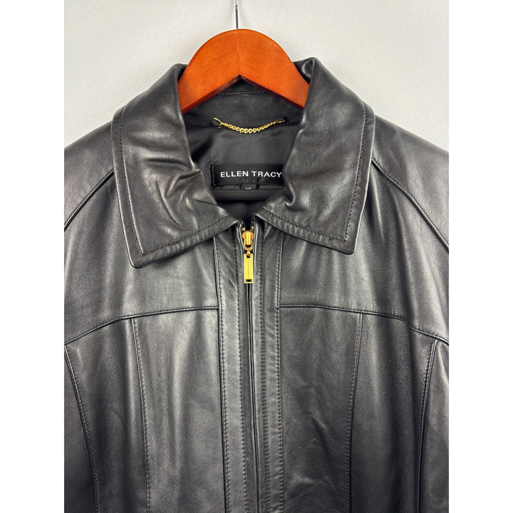 Women’s Ellen Tracy XL Black Leather Jacket with Gold Hardware