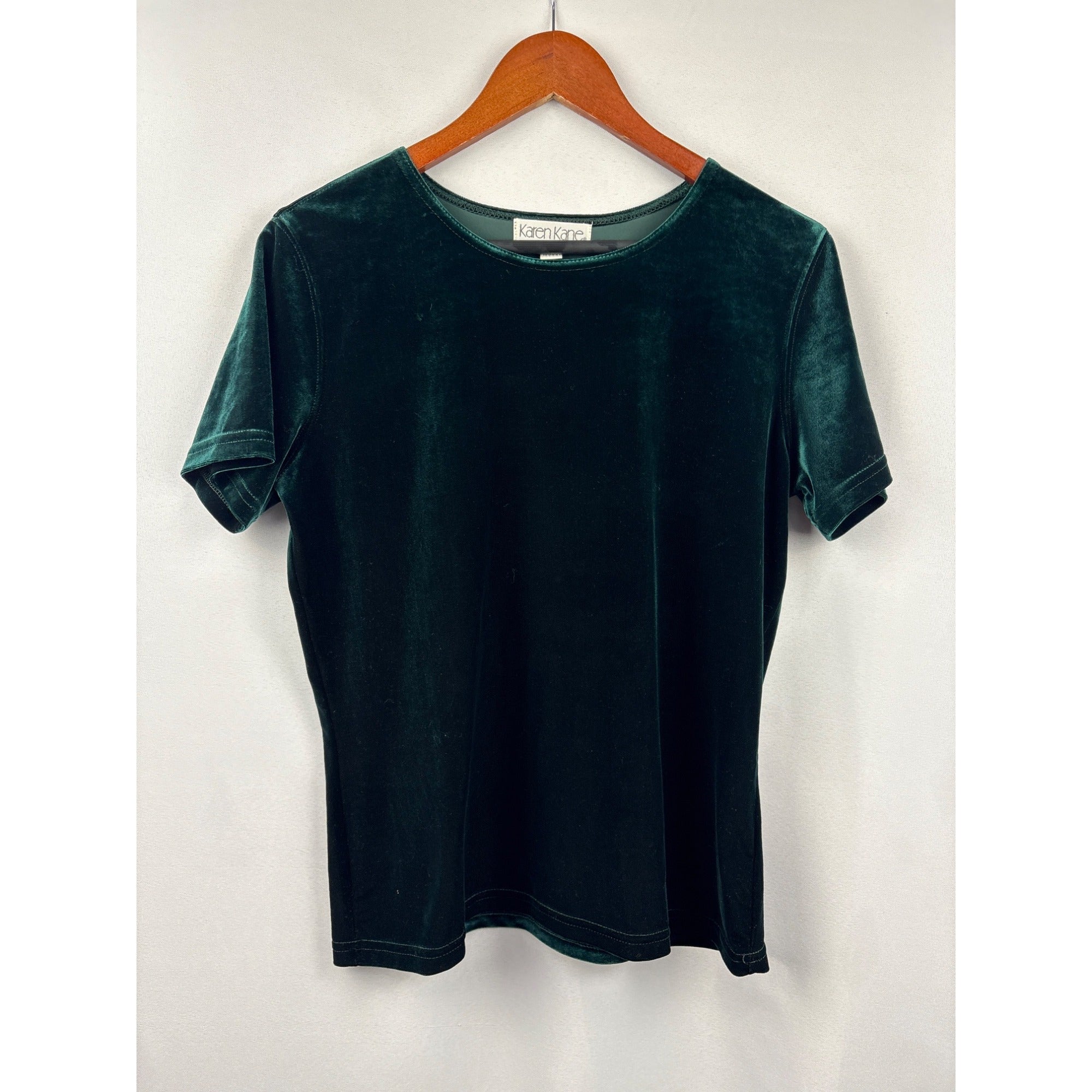 Women’s Karen Kane Large Emerald Green Velvet Short Sleeve Blouse