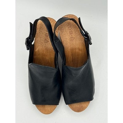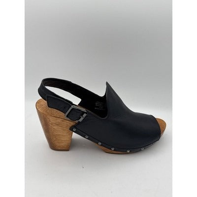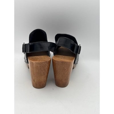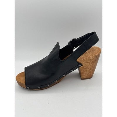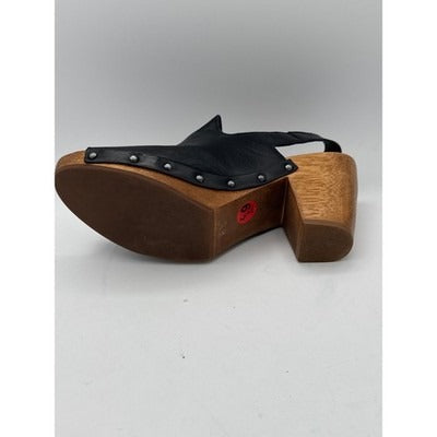 Women’s KDB Black Brown Clogs Block Sandal Leather Studded Wood Heels Sz 6.5