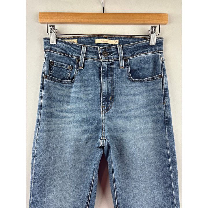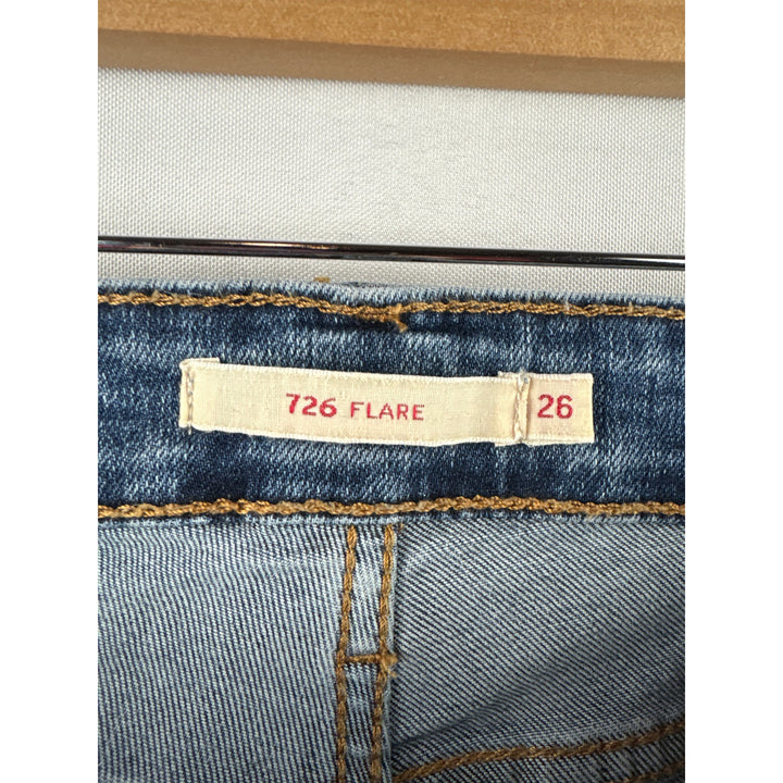 Elevate your denim lineup with the Women’s Levi's 726 Flare Jeans in Light Blue Washed. Crafted from thick, sturdy cotton denim that feels incredibly soft, these jeans offer durability without sacrificing comfort. The size 26 fit includes a touch of stretch for easy movement, making them a go-to pair for everyday wear.