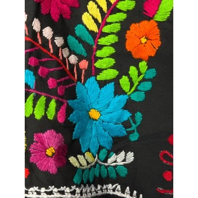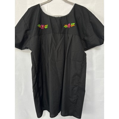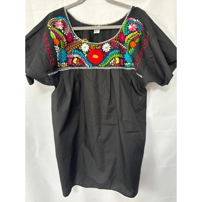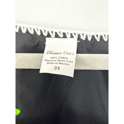 Women’s Liliana Cruz Multicolor Floral Embroidered Black Cotton shirt Sz 2X