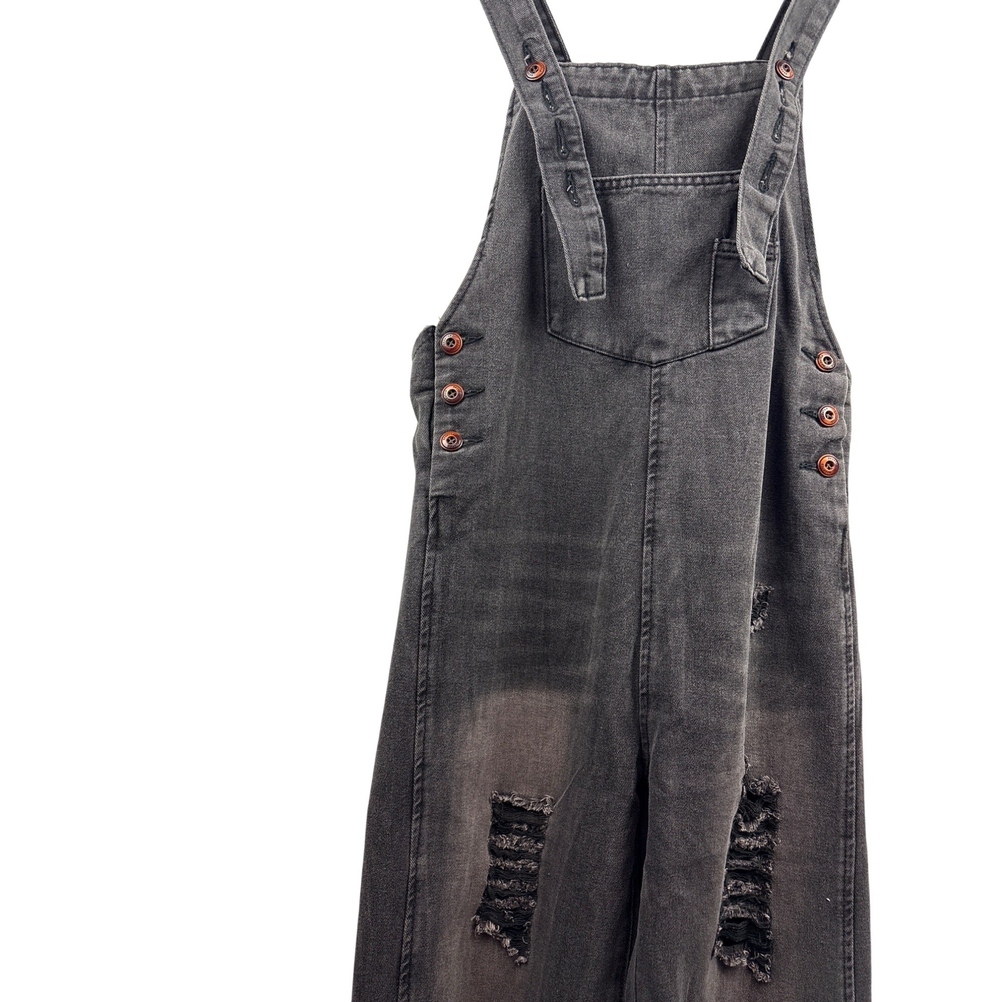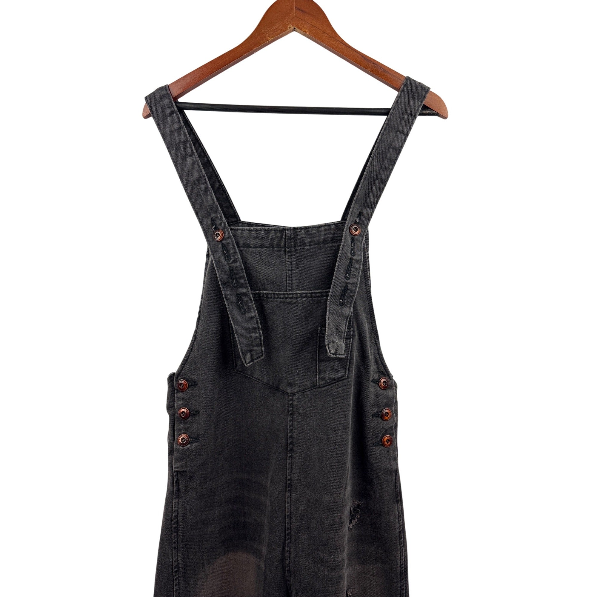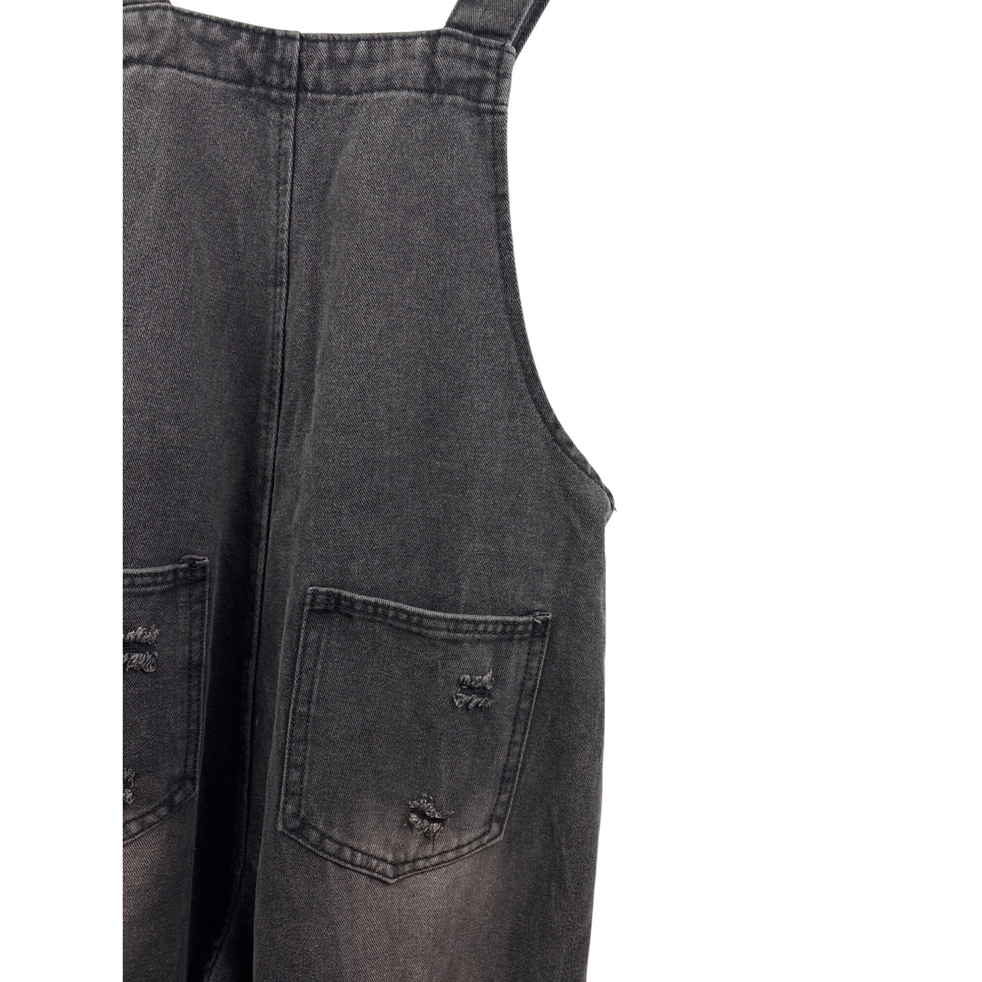 Women’s Medium Unbranded Dark Grey Washed Distressed Overalls
