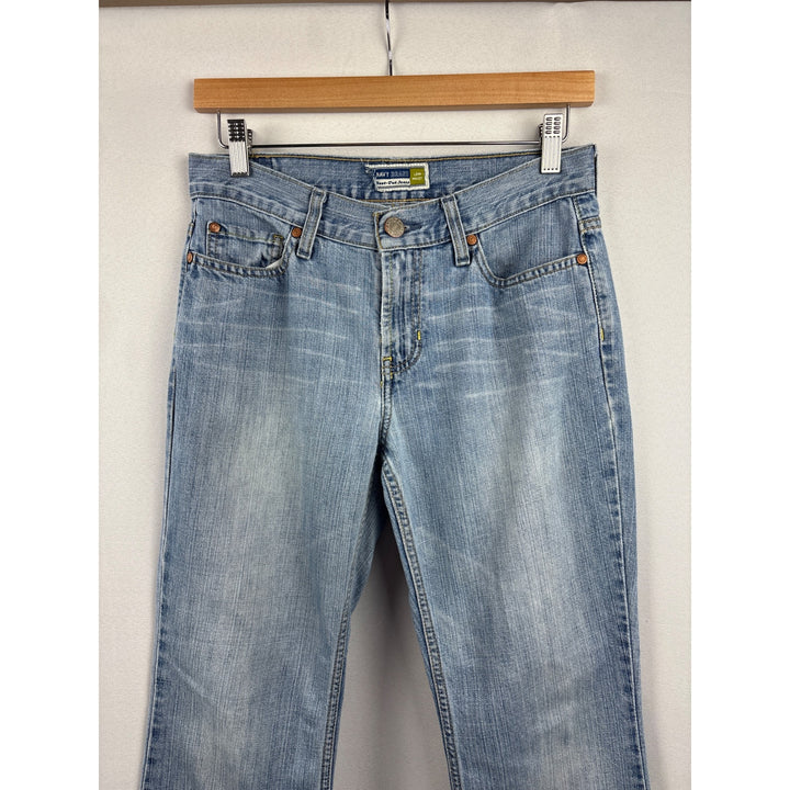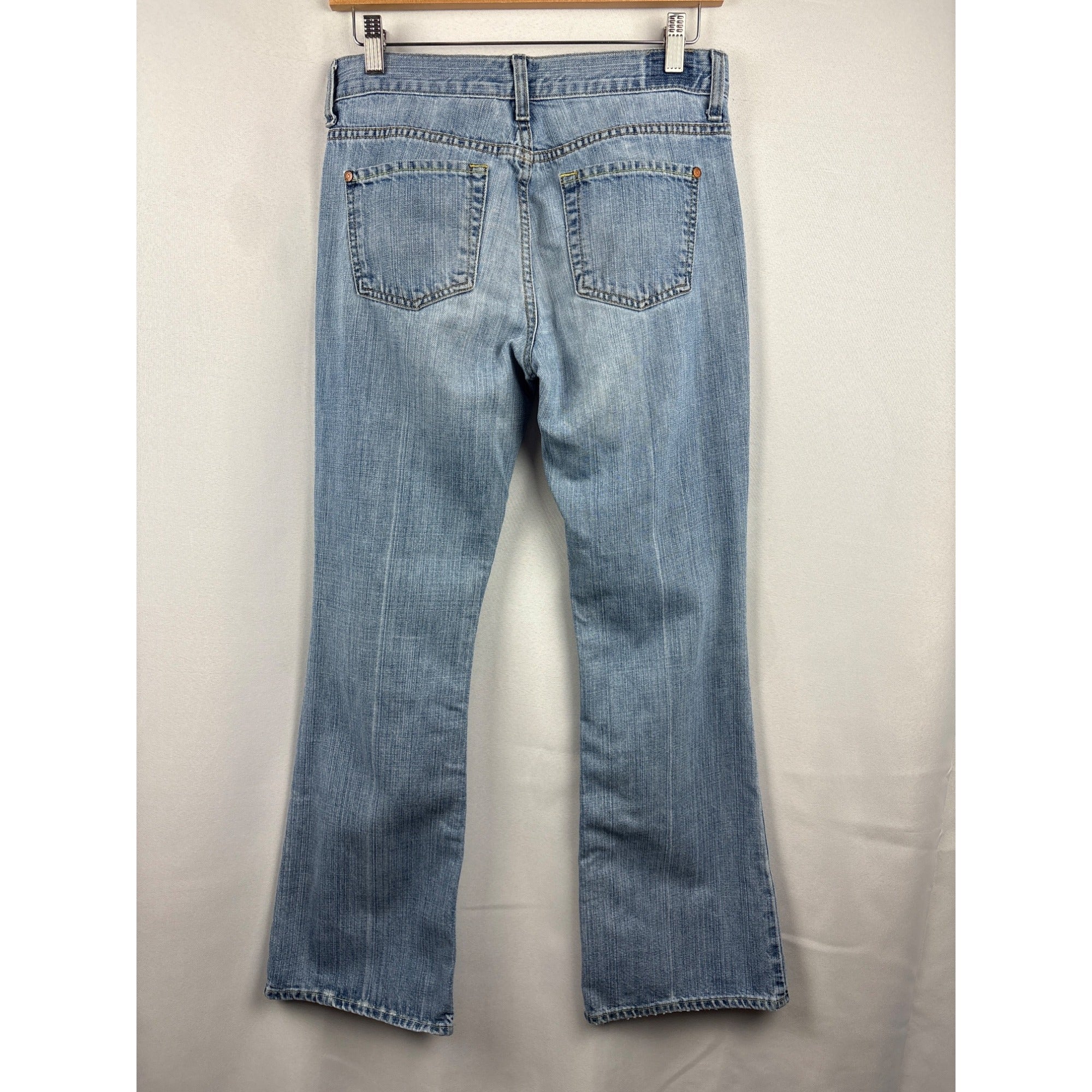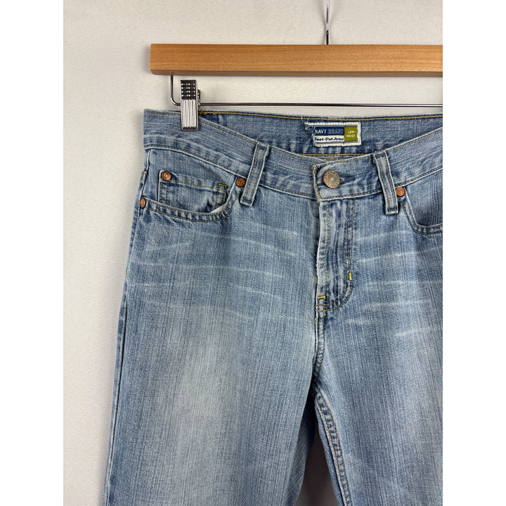 Women’s Old Navy Size 4 Short Light Blue Jeans with a Green Thread Stitch