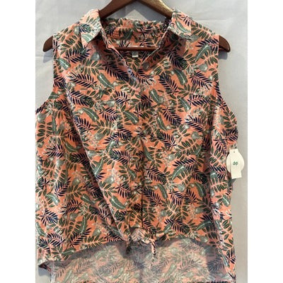 Women’s Plus Size DIP Crop Tie Tank Blouse Pink Floral Size 1X