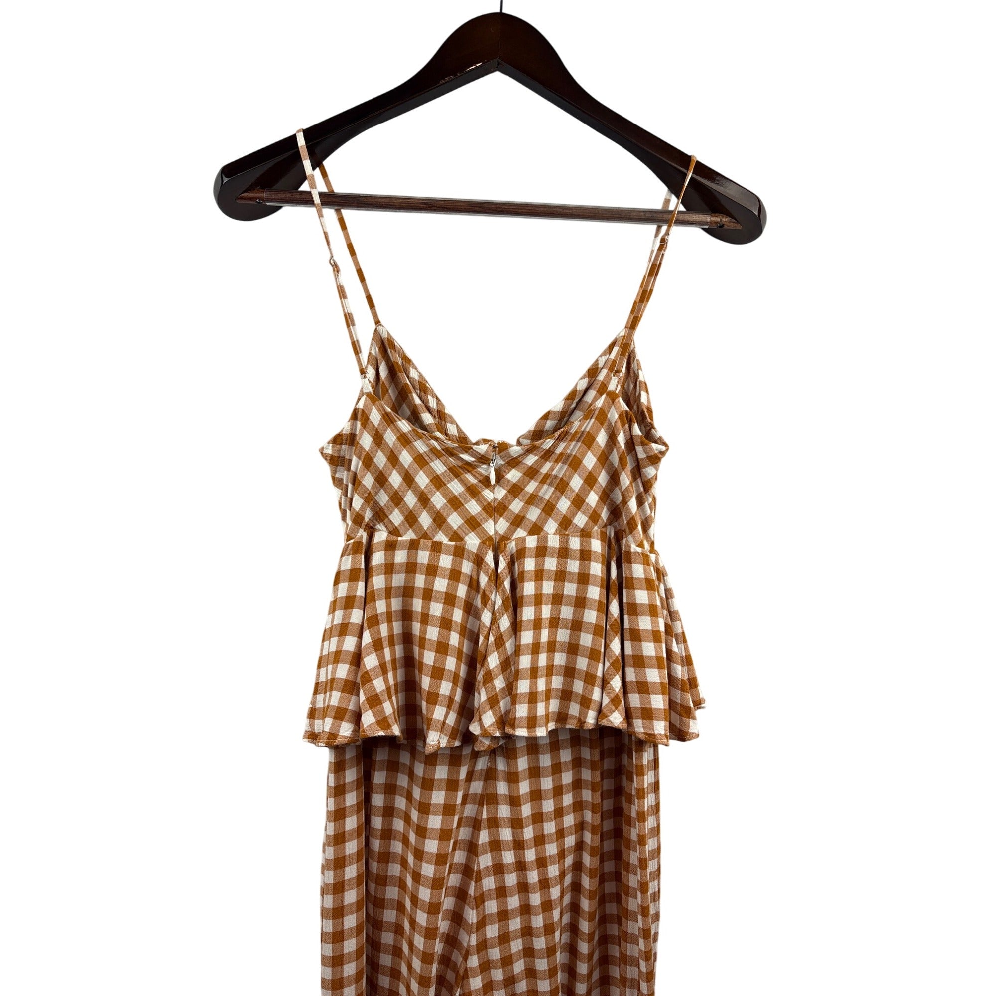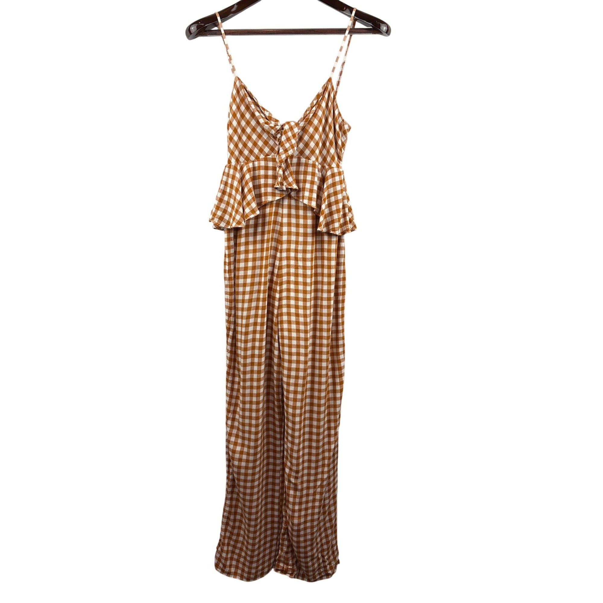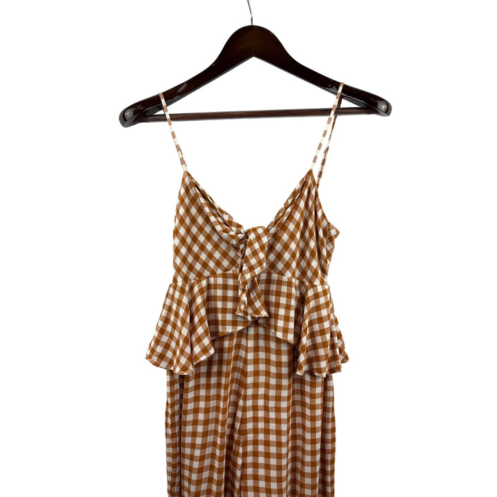 Women’s Saylor Small Brown & White Gingham Tank Pantsuit with Ruffled Bust