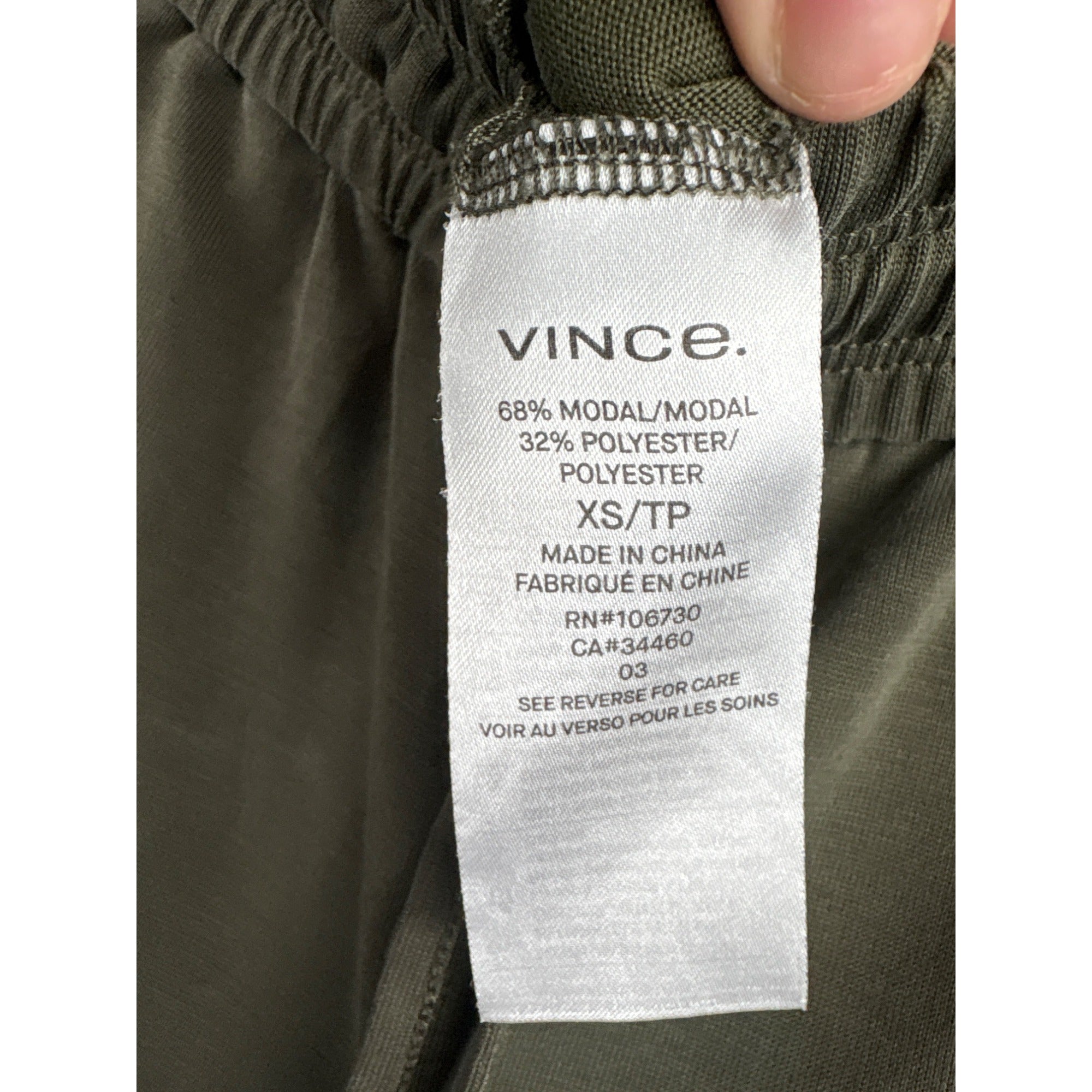 Women’s XS Vince Army Green Joggers with Front & Back Pockets