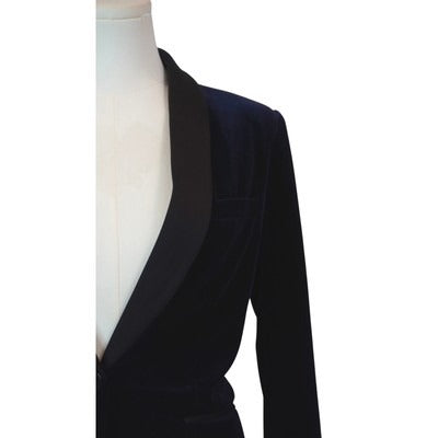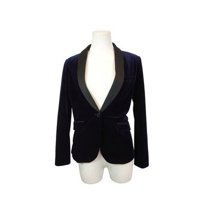 Women's Impress Blue Velvet with Shoulder Pads Blazer - Size S